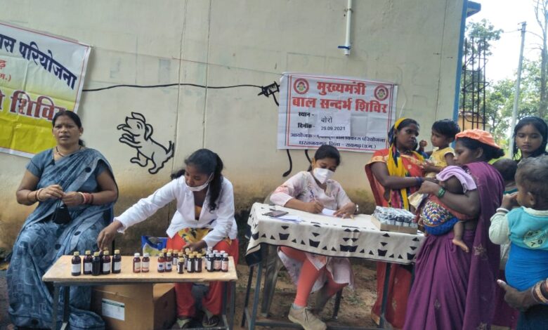 धरमजयगढ़ क्षेत्र के बोरो ग्राम आंगनबाड़ी केंद्र में हेल्थ कैम्प लगाकर बच्चों का स्वास्थ्य परीक्षण किया गया इसमें बोरो सेक्टर अंतर्गत चिन्हांकित 60 गंभीर व मध्यम कुपोषित बच्चों का हेल्थ कैम्प में डॉक्टर की मौजूदगी में स्वास्थ्य परीक्षण किया गया जरूरत के लिहाज से कैम्प में मौजूद बच्चों की माताओं को समझाइस के साथ दवाई दी गई वहीं महिला एवं बाल विकास अधिकारी कर्मचारियों द्वारा कैम्प में मौजूद माताओं को कुपोषण दूर करने विशेष जानकारी दी गई बच्चों को नियमित पोषण देने माताओं को समझाइस भी दिया गया कैम्प में बच्चोँ को पोषण आहार खिलाया गया भोजन में दिया गया आज के इस महती कार्यक्रम में डॉक्टर राठिया परियोजना अधिकारी एंजेला कुजूर ,बोरो सेक्टर प्रभारी समेत आंगनबाड़ी कार्यकर्ता साथ ही बोरो सेक्टर से भारी तादाद में महिलाएं मौजूद रही।