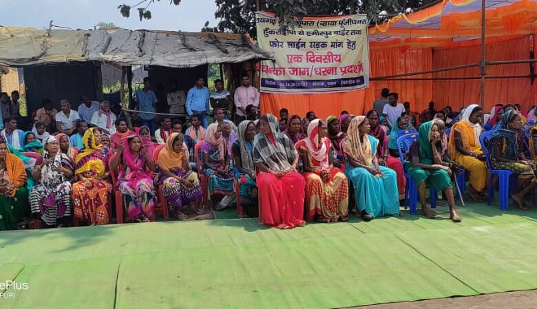 जर्जर सड़क को लेकर जनपद सदस्य,भाजपा व सैकड़ो ग्रामीणो द्वारा हुंकराडीपा में धरना प्रदर्शन नाकेबन्दी