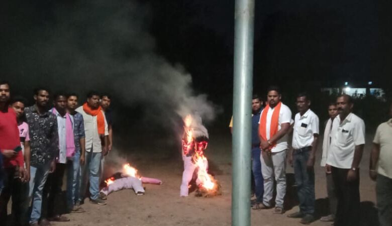 तमनार @ संदेशा 24 छत्तीसगढ़ राज्य के कवर्धा में विगत दिनों हुए भगवा ध्वज अपमान एवं सनातनी हिन्दुओं पर लाठी चार्ज करने के विरोध में छत्तीसगढ़ प्रदेश भारतीय जनता पार्टी के निर्देश भारतीय जनता पार्टी रोडोपाली मंडल एवं युवा मोर्चा के तत्वाधान में आज 7 अक्टुबर को दोपहर 6.30 बजे मिलूपारा चौक में प्रदेश के मुख्यमंत्री भूपेश बघेल और खाद्य एवं वन मंत्री मोहम्मद अकबर का पुतला दहन किया गया। जिसमें भाजपा के साथ युवा मोर्चा मण्डल रोडोपाली के पदाधिकारी एवं कार्यकर्ता भी भारी संख्या में शामिल हुए।