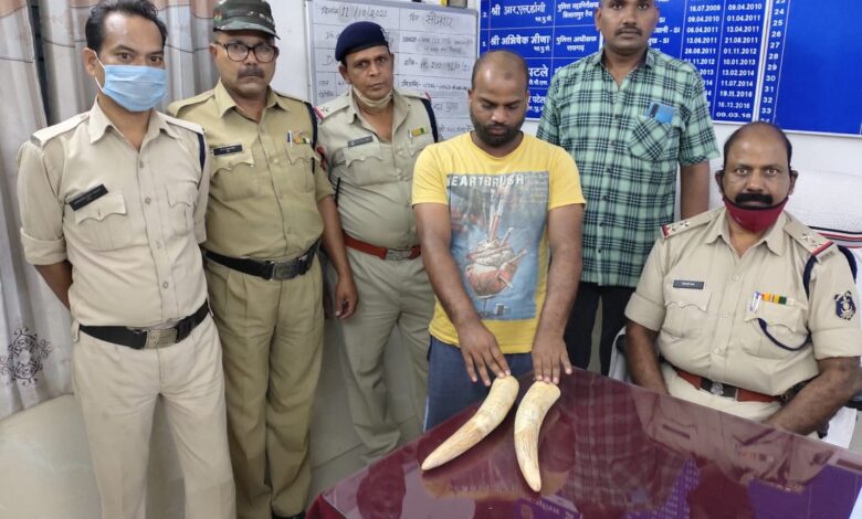शहर में कड़ी सुरक्षा जांच के बीच हाथी दांत की तस्करी विफल,@ रेड कार्यवाही में आरोपी से करीब 4 लाख रूपये कीमत के दो नग हाथी दांत जप्त