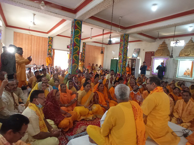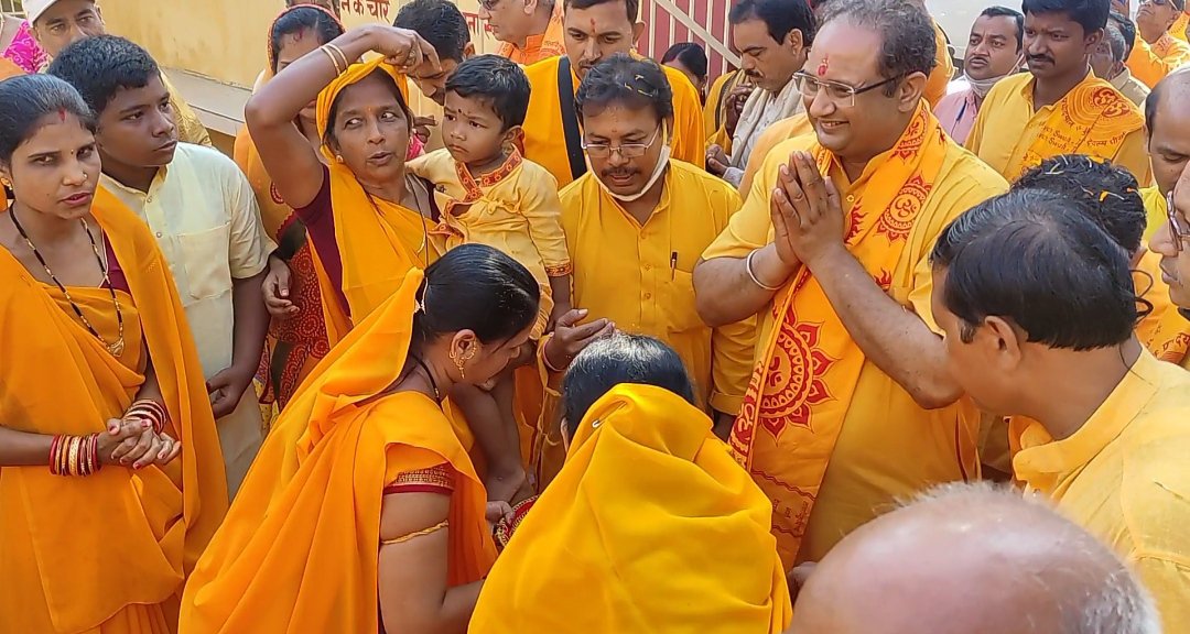 तमनार @ संदेशा 24 दुलेन्द्र पटेल 21.10.2021 केलो वनांचल आदिवासी बाहुल्य तमनार की गायत्री मंदिर में आगमन पर आरती तिलक रौली के साथ स्वागत पश्चात मां गायत्री की पूजा अर्चना के पश्चात आशीर्वचन दिया गया