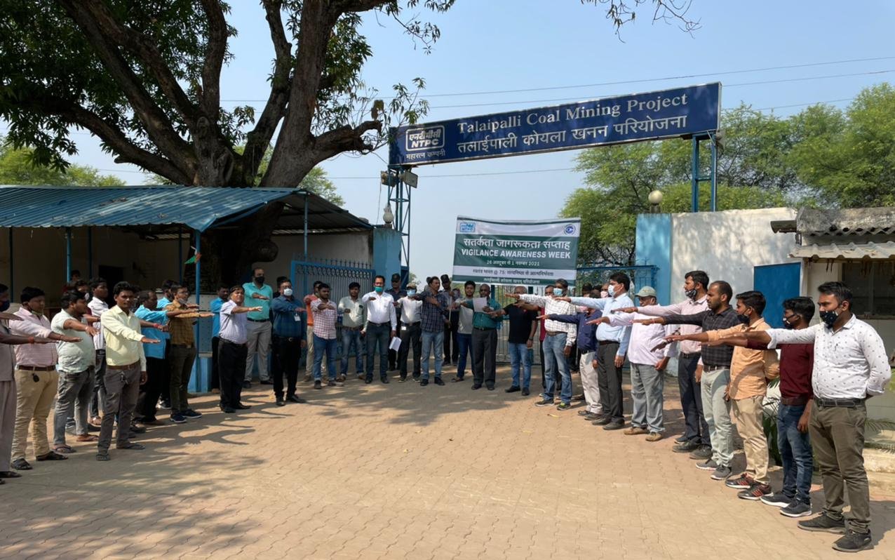एनटीपीसी तलईपल्ली कोयला खनन् परियोजना में केन्द्रीय सर्तकता आयोग के निर्देशानुसार सर्तकता जागरूकता सप्ताह 2021 का शुभारंभ किया गया । परियोजना में दिनांक 26 अक्टूबर 2021 से 01 नवम्बर 2021 तक सर्तकता जागरूकता सप्ताह 2021 मनाया जा रहा है । इस वर्ष का विषय स्वतंत्र भारत @75वां सत्य निष्ठा से आत्मनिर्भरता है । सर्तकता जागरूकता सप्ताह के दौरान विविध कार्यक्रमों जैसे सत्यनिष्ठा प्रतिज्ञा वाल्कथान नुक्कड़ नाटक नारा निबंध चित्रकला प्री रिकार्डेड विडियो स्पीच इत्यादि प्रतियोगिताओ का परियोजना प्रभावित गाव तथा घरघोड़ा के विद्यालयो में विभिन्न सर्तकता जागरूकता कार्यक्रमो का मंचन होना है।