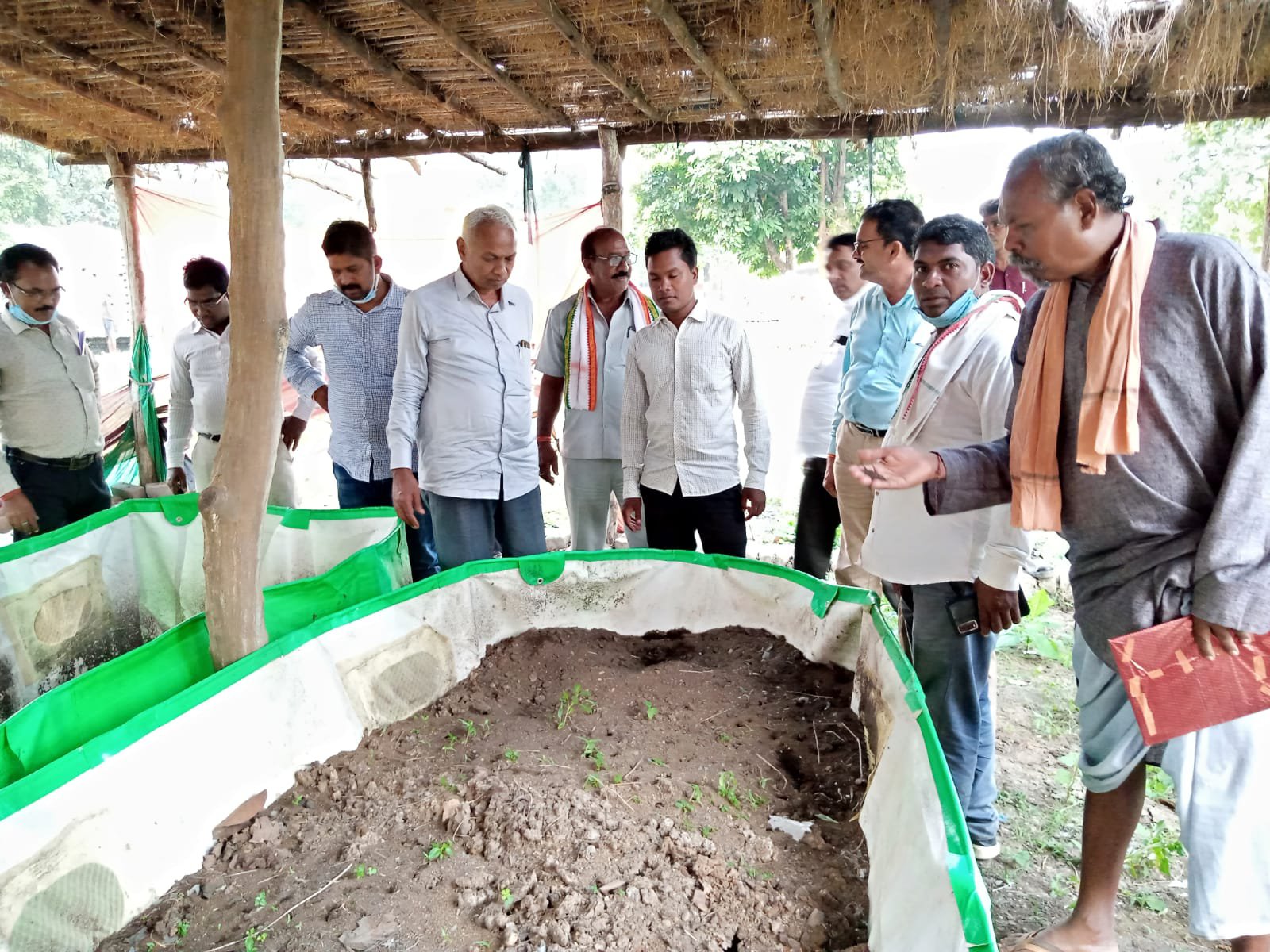 @ गोधन न्याय योजना के तहत गौठान में वर्मी कंपोस्ट खाद निर्माण बेहतर संचालन की प्रशंसा करते किया प्रोत्साहित