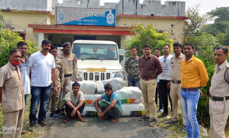 जानकारी के अनुसार *दिनांक 26/10/2021 को* थाना प्रभारी डोंगरीपाली निरीक्षक जितेन्द्र एसैया को मुखबिर से सूचना मिला की 02 व्यक्ति एक सफेद रंग का *पिकअप वाहन क्रमांक UP-70- JT- 4128* में भारी मात्रा में अवैध मादक पदार्थ गांजा लेकर सोहेला बरमकेला रोड में जाने वाले है, सूचना से वरिष्ठ अधिकारियों को अवगत कराकर थाना प्रभारी अपना स्टाफ लेकर नाकेबंदी करने मौका स्थल *सोहेला बरमकेला मेन रोड़ बिरनीपाली बार्डर गेट के पास* पंहुचकर घेराबंदी किया, कुछ देर में मुखबीर द्वारा बताये अनुसार एक सफेद रंग का पिकप वाहन सोहेला ओड़िसा से बरमकेला की ओर आते दिखी जिसे बिरनीपाली बार्डर गेट के पास रोकने पर पुलिस को देखकर वाहन को कुछ दूर पहले 02 तस्कर खड़ी कर बिरनीपाली गांव खेत की ओर भाग गये । थाना प्रभारी द्वारा वरिष्ठ अधिकारियों से दिशा निर्देश प्राप्त कर सर्चिंग टीम की सुरक्षा उपाय कर गांव की घेराबंदी कर दोनों आरोपियों को पकडा गया । पकडे गये तस्करों से पूछताछ करने पर अपना नाम (1). कृपा शंकर देवांगन पिता रामलोचन देवांगन उम्र 22 वर्ष ( 2). अक्षय कुमार गुप्ता पिता शिवपूजन गुप्ता उम्र 19 वर्ष दोनेा साकिनान ग्राम पोखरा थाना बभनी तहसील दुधी जिला सोनभद्र उ0प्र के रहने वाले बताये । जिन्हें कार्यवाही की जानकारी देकर उनके पिकअप वाहन क्र. UP70 JT 4128 का तलाशी लिया जो वाहन पिकअप के पीछे डाला में मुंगफली बोरियो के नीचे छिपाकर रखे 5 सफदे रंग की बोरी में खाकी रंग के टेप से लपेटा हुआ 5 बोरी में 148 पैकेट संदिग्ध पदार्थ गांजा मिला, जिसका कुल वजन *148 किलो गांजा अनुमानित कीमत करीबन 14,80,000/- रूपये* है तथा आरोपियों से जप्त पिकअप वाहन की कीमत करीब 5 लाख है । इस प्रकार आरोपियों से करीब 20 लाख जप्त की सम्पत्ति की जप्ती की जाकर दोनों आरोपियों पर थाना डोंगरीपाली में 20(बी) एनडीपीएस एक्ट की कार्यवाही कर रिमांड पर भेजा गया है ।