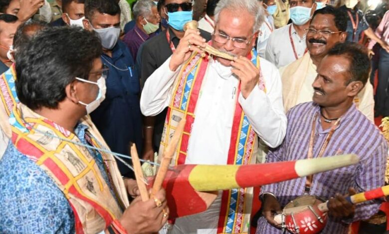 मुख्यमंत्री श्री भूपेश बघेल ने इस मौके पर राज्य के सभी वर्ग एवं समाज के देवी-देवताओं को नमन करते हुए कहा कि अनेकता में एकता हमारी ताकत और पहचान है। उन्होंने कहा कि इसे जोड़ने एवं संजोने के लिए विश्व के आदिवासियों को एक मंच पर लाने के लिए यह आयोजन किया जा रहा है, ताकि वह संस्कृति को, अपनी ताकत को जाने और आगे बढ़े। छत्तीसगढ़ आज आदिवासियों का वैश्विक मंच के रूप में अपनी पहचान स्थापित कर रहा हैं। उन्होंने कहा कि इसमें सफलता मिली है। यह राष्ट्रीय नृत्य महोत्सव का द्वितीय आयोजन है। मुख्यमंत्री ने कहा कि छत्तीसगढ़ राज्य में 42 जनजातियां और 5 विशेष पिछड़ी जनजातियां निवास करती है। इनकी जनसंख्या राज्य की कुल आबादी की एक-तिहाई है। सभी जनजातियों की विशिष्ट सांस्कृतिक पहचान है। उनकी बोली, उत्सव, नृत्य, देवी-देवता भी अलग-अलग है। राष्ट्रीय आदिवासी नृत्य महोत्सव के माध्यम से जनजातियों की सांस्कृतिक विभिन्नता, उनकी कला को हमें एक मंच पर देखने और जानने का अवसर मिल रहा है। मुख्यमंत्री श्री भूपेश बघेल ने छत्तीसगढ़ राज्य में आदिवासी समुदाय की बेहतरी के लिए किए जा रहे कार्याें का उल्लेख करते हुए कहा कि छत्तीसगढ़ राज्य के नवनिर्माण में सबकी भागीदारी हो, सबका विकास हो, यह हमारी प्राथमिकता है।