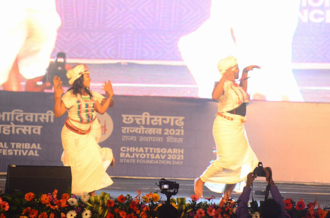 राष्ट्रीय आदिवासी नृत्य महोत्सव और छत्तीसगढ़ राज्योत्सव का शुभारंभ झारखण्ड के मुख्यमंत्री एवं कार्यक्रम के मुख्य अतिथि श्री हेमंत सोरेन ने दीप प्रज्जवलित कर किया। इस अवसर पर कार्यक्रम की अध्यक्षता मुख्यमंत्री श्री भूपेश बघेल ने की। कार्यक्रम में राज्यसभा के पूर्व सांसद श्री बी.के. हरिप्रसाद, विधानसभा अध्यक्ष डॉ. चरणदास महंत, युगाण्डा एवं फिलीस्तीन के कॉउंसलर विशिष्ट अतिथि के रूप में मौजूद थे। रायपुर के साइंस कॉलेज मैदान में 28 अक्टूबर से 1 नवम्बर तक आयोजित होने वाले इस ‘राष्ट्रीय आदिवासी नृत्य महोत्सव’ और छत्तीसगढ़ राज्योत्सव में देश के 27 राज्यों और 6 केन्द्रशासित प्रदेशों के कलाकारों के साथ ही 07 देशों- एस्वातीनी, नाइजीरिया, उज्बेकिस्तान, श्रीलंका, यूगांडा, माली और फिलिस्तीन से आए लगभग 1500 कलाकार भाग ले रहे हैं।