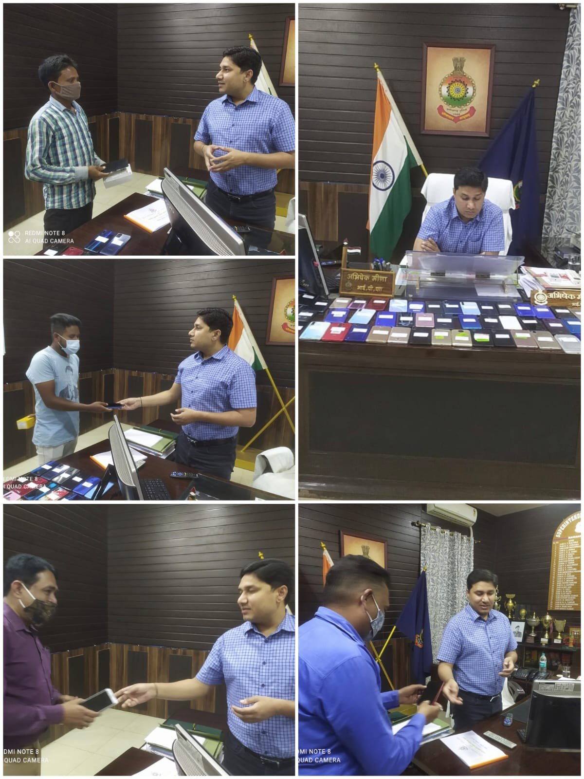 रायगढ़ पुलिस की #साइबर सेल ने *पिछले दो माह के भीतर* गुम मोबाइल की शिकायतों में *चोरी व गुम हुए 120 मोबाइल फोन बरामद* कर दीपावली के पहले फोन मालिको को दीपावली को तोहफा दिया गया है । पुलिस अधीक्षक श्री अभिषेक मीना एवं अतिरिक्त पुलिस अधीक्षक श्री लखन पटले द्वारा आज दिनांक 30/10/2021 को एसपी कार्यालय में मोबाइल फोन मालिकों को बुलाकर उनके गुम मोबाइल फोन वापस किया गया है ।