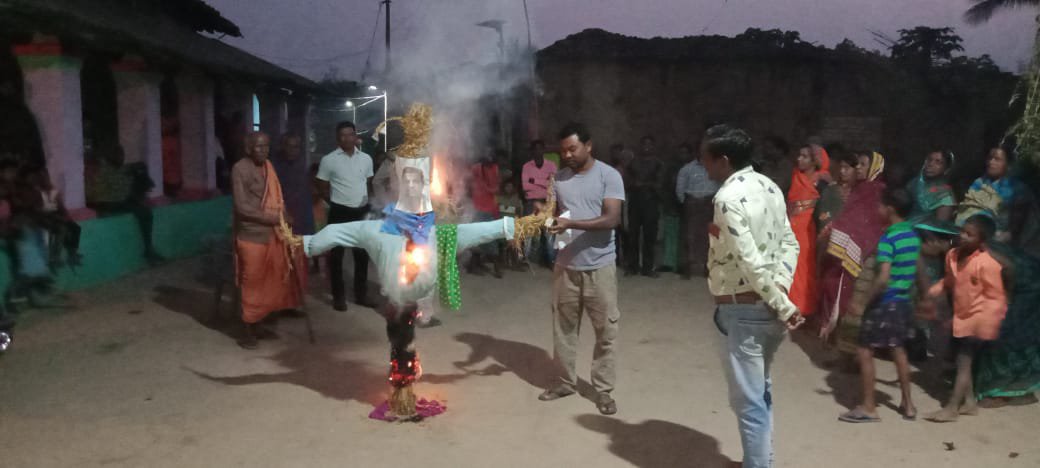 भाजपा मंडल तमनार ने दर्जनों गांवों में मोहम्मद अकबर का किया पुतला दहन