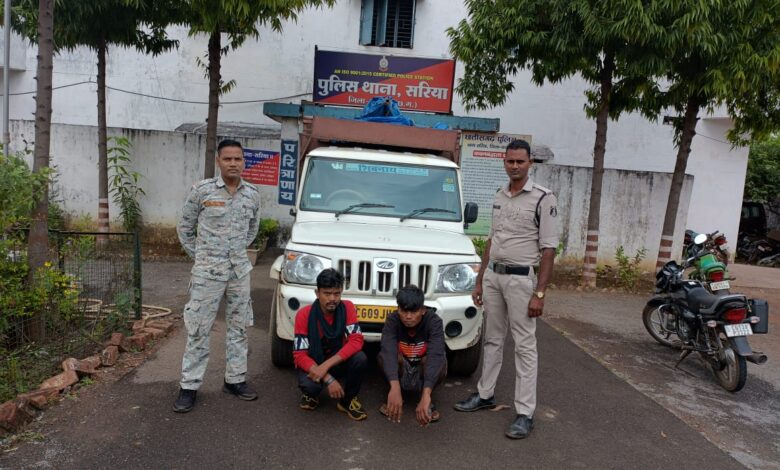 दिनांक 13/11/2021 को सरिया टीआई विवेक पाटले को मुखबिर से सूचना मिली कि बडे नावापारा का श्रीमत प्रधान मवेशी का धंधा करता है, उसके दो व्यक्ति *पिकअप वाहन क्र0 CG 09 JH 8245* में मवेशी लोड कर बुचड खाना ले जाने वाले है । थाना प्रभारी द्वारा मादक पदार्थों की निगरानी में बेरियर ड्यूटी कर रहे सभी जवानों को अलर्ट किये और थाने से अतिरिक्त बल कार्यवाही के लिये अमलीपाली बेरियर रवाना किये । बेरियर स्टाफ द्वारा शाम करीब 07 बजे पिकअप क्र0 CG 09 JH 8245 को रोककर चेक किया गया जिसमें 08 मवेशियों को पिकअप ड्रायवर कुश कुमार पिता पुरी सदावर्ती बडे नावापारा तथा किशन निषाद पिता श्रीराम निषाद बडे नावापारा ठुंस-ठुंस कर बेरहमीपूर्वक भरे थे । स्टाफ द्वारा कृषक मवेशियों को आरोपियों के कब्जे से मुक्त कर गौठान में रखने की व्यवस्था किया गया है । आरोपियों ने श्रीमत प्रधान के कहने पर मवेशियों को ओडिसा बुचड़ खाना ले जाना बताये । दोनों गिरफ्तार आरोपियों से पुलिस द्वारा 08 नग कृषिधन कीमती 60,000 रुपये एवं पिकअप वाहन क्रमांक CG09JH 8245 कीमती 2,50,000 रुपये का जप्त किया गया है । आरोपी 1- श्रीमत प्रधान 2. कुश सदावर्ती पिता पुरी सदावर्ती उम्र 23 साल 3. किशन निषाद पिता श्रीराम निषाद उम्र 22 साल साकिनान बड़े नावापारा थाना सरिया के विरूद्ध थाना सरिया में छत्तीसगढ़ कृषक पशु परिरक्षण अधिनियम 2004 की धारा 4, 6, 10 के तहत कार्रवाही कर रिमांड पर भेजा गया है । आरोपी श्रीमत प्रधान फरार है, जिसकी पतासाजी के लिये स्टाफ लगाया गया है ।