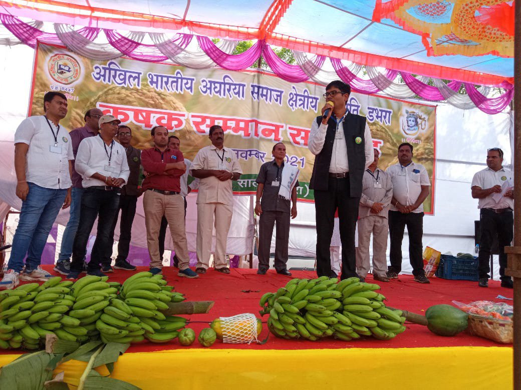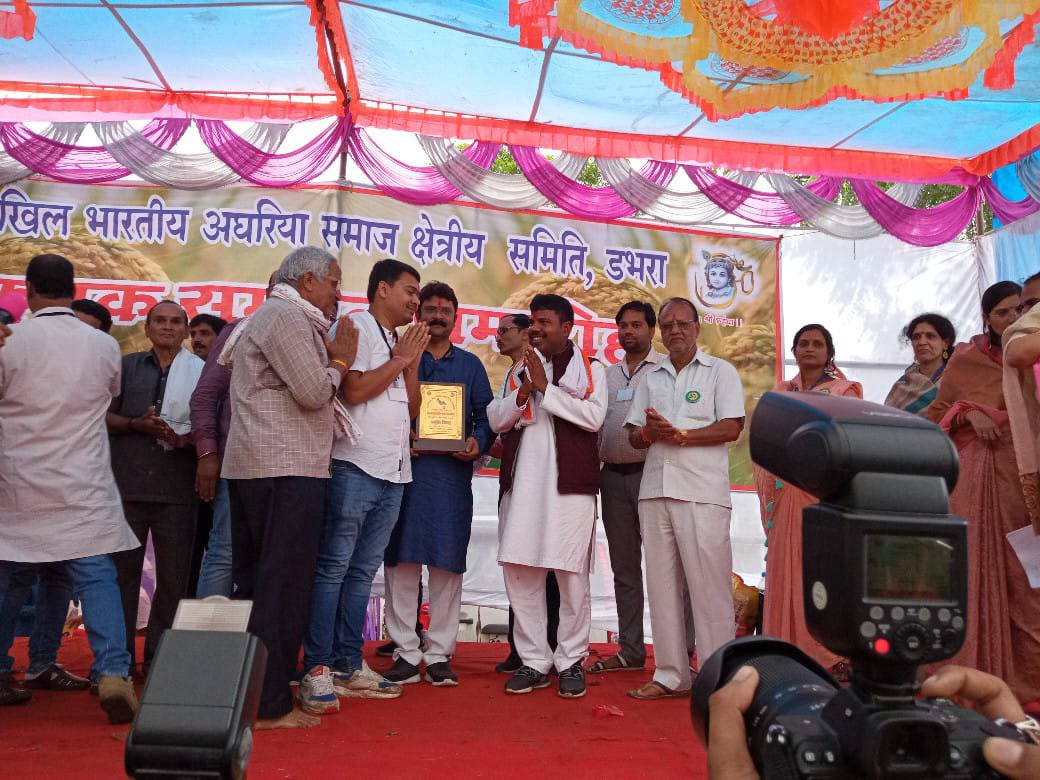 रायगढ़ @ संदेशा 24 दुलेन्द्र पटेल 15.11.2021 अखिल भारतीय अघरिया समाज क्षेत्रीय समिति डभरा द्वारा ग्राम साल्हे में 14 नबम्बर 2021 को 6 चौधरी 18 नायक 60 पटेल गोत्र के सैकड़ो सामाजिक कृषक बन्धुओ,केंद्रीय व क्षेत्रीय पदाधिकारीगणों, जनप्रतिनिधियों, विशिष्ट व्यक्तियों की गरिमामयी उपस्थिति में उत्कृष्ट जैविक खेती,बागवानी फसल,सब्जिवर्गीय फसल, दूध उत्पादन,मशरूम उत्पादन और सर्वाधिक रकबे में खेती करने वाले सभी क्षेत्रों से 360 लोगो को उत्कृष्ट कृषक सम्मान से प्रशस्ति पत्र,स्मृति चिन्ह से सम्मानित किया गया।