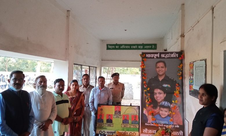 ग्राम्य भारती तमनार में शहीद कर्नल विप्लव त्रिपाठी परिवार को दी गई श्रद्धांजलि
