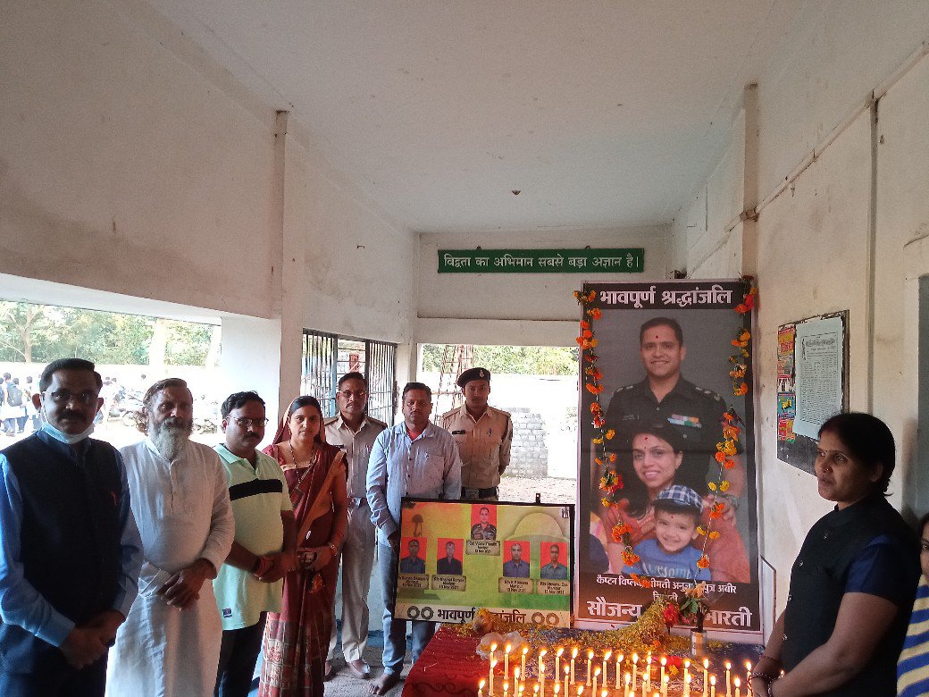 पत्रकार दुलेन्द्र पटेल ने अश्रुपूरित श्रद्धांजलि अर्पित करते शहीद कर्नल विप्लव त्रिपाठी अमर रहे,वन्दे मातरम,भारत माता जयघोष करते नमन वंदन वंदन किया।बीडीसी ममता साव ने त्रिपाठी परिवार के बलिदान को नमन करते बच्चों को देश सेवा हेतु प्रोत्साहित किये।
