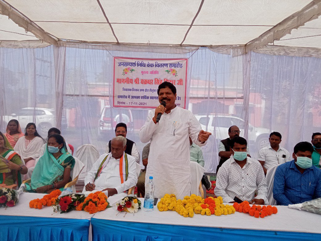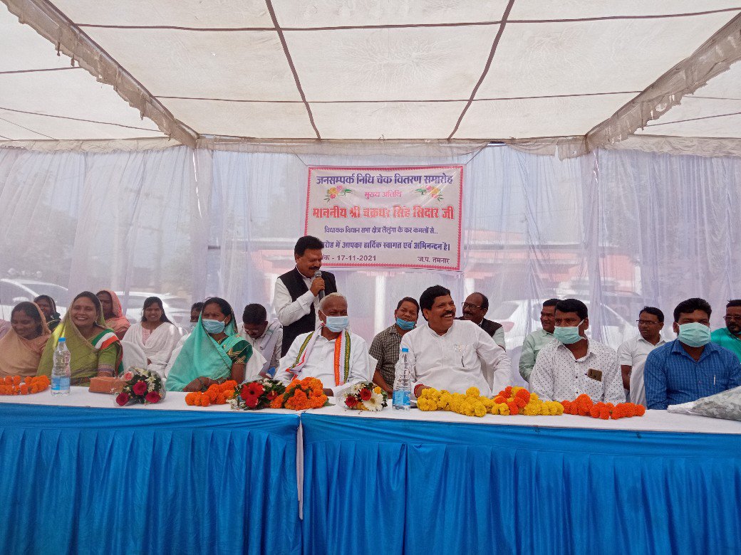 जनपद तमनार में विधायक जनसम्पर्क निधि चेक वितरण सम्पन्न @ शासकीय योजनाओ को प्रशासन,जनप्रतिनिधि गांव के अंतिम व्यक्ति तक लाभ दिलाएं – चक्रधर सिंह