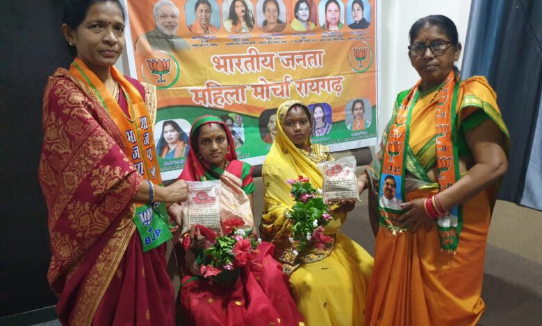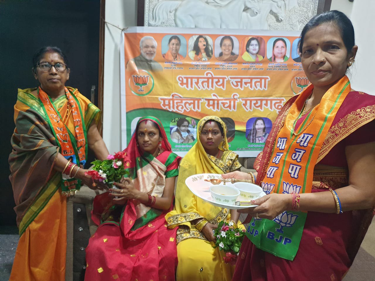 भारतीय जनता पार्टी के राष्ट्रीय अध्यक्ष बानती श्रीनिवासन एवं प्रदेश अध्यक्ष शालिनी राजपूत के आदेशानुसार एवं जिला प्रभारी नंदनी रजवाड़े सहप्रभारी ज्योति पांडे,जिला अध्यक्ष केराबाई मनहर संगठन प्रभारी शीला तिवारी के कुशल मार्गदर्शन मे प्रदेश कार्य समिति सदस्य एवं जिला महामंत्री गीतांजली पटनायक रायगढ के द्वारा गर्भवति महिलाओ का गोद भराई कार्यक्रम सनातन रिती के अनुसार विधि विधान से कराया गया। तिलक चंदन व पुष्प गुच्छ व आरती कर श्रीफल ,श्रृंगार सामान व रेडी टु ईट मिठाई देकर सम्मान किया गया। भारत के यशस्वी प्रधान मंत्री नरेन्द्र मोदी जी के द्वारा मातृवंदना योजना के अंतर्गत गर्भवति माताओ को गर्भावस्था से लेकर प्रसव होने तक छह हजार रुपये दिया जाता है।