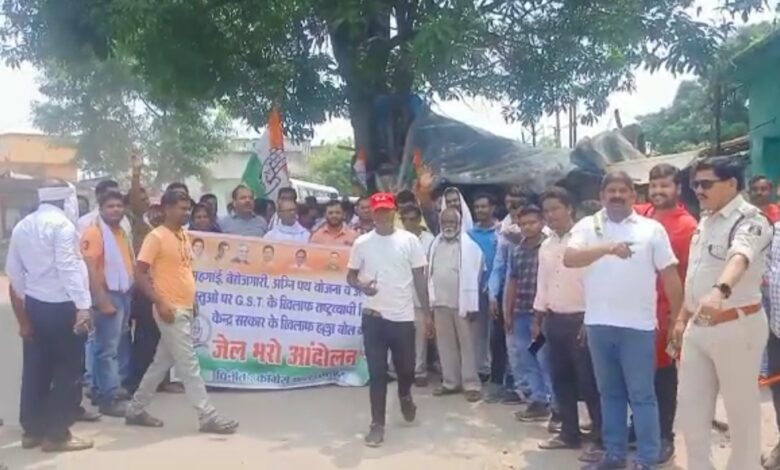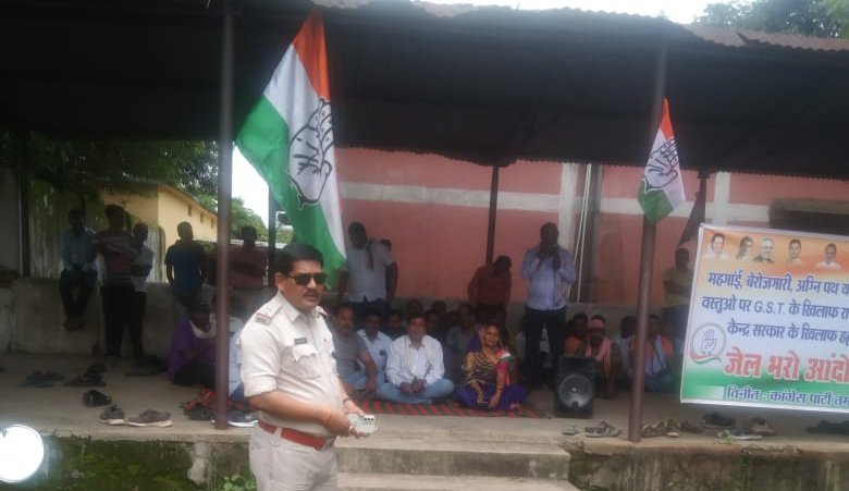 तमनार में कांग्रेसियो द्वारा बढ़ती महंगाई,जीएसटी केंद्र सरकार के नीतियों के खिलाफ किया धरना प्रदर्शन जेल भरो आंदोलन