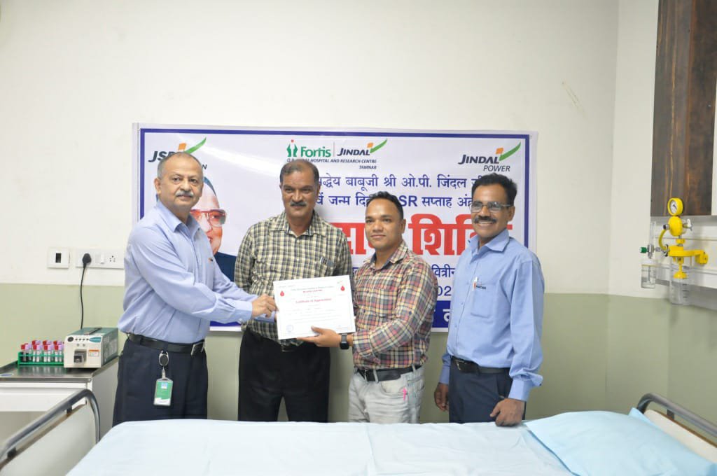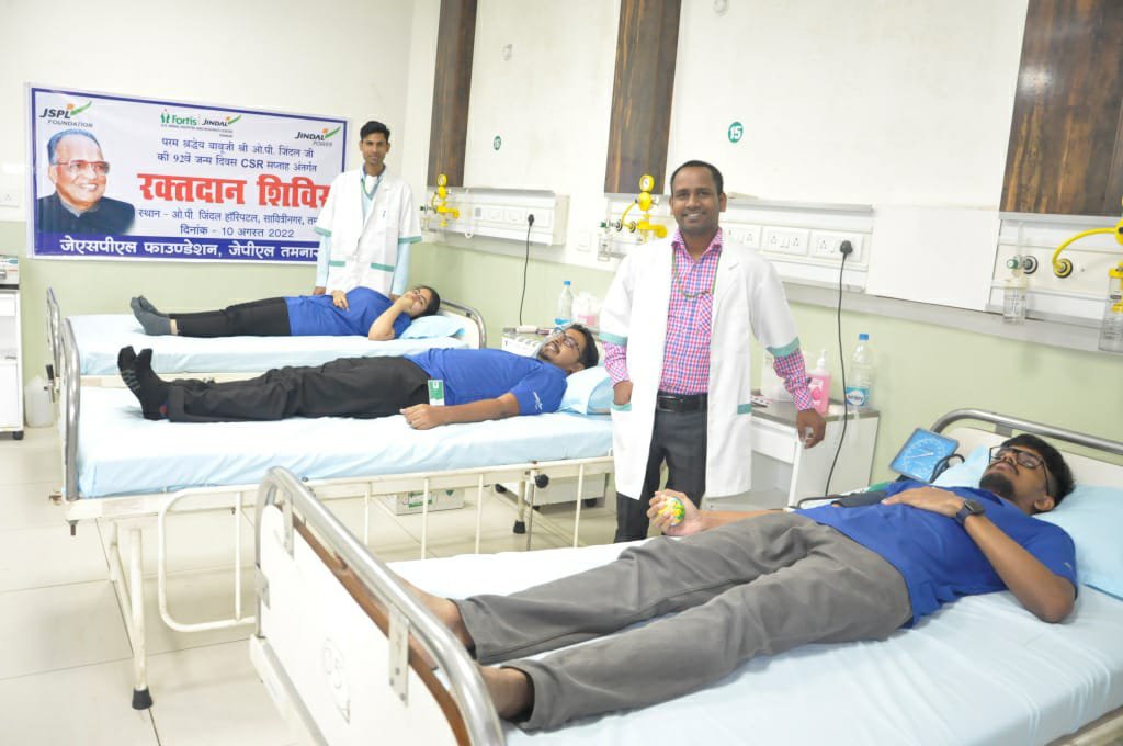 तमनार @ संदेशा 24 ओम प्रकाश जिंदल ‘बाबूजी’ के 92वीं जयंती के अवसर पर आयोजित सीएसआर सप्ताह के चतुर्थ दिवस को उनके सामुदायिक विकास को समर्पित करते हुए जेएसपी फाउंडेशन, जेपीएल तमनार एवं ओपी जिंदल हॉस्पिटल, रेडक्रॉस सोसायटी रायगढ़ और ओपी जिंदल हॉस्पिटल एवं रिसर्च सेंटर सावित्रीनगर एवं रायगढ़ के संयुक्त तत्वाधान में रक्तदान शिविर का आयोजन फोर्टिस ओपी जिंदल हॉस्पिटल रिसर्च सेंटर सावित्रीनगर तमनार में किया गया।