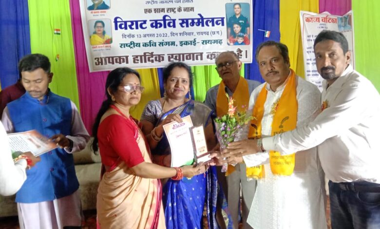 जैसे भावों से अपनी लेखनी चलाने वाली रायगढ़ जिले की जानीमानी कवियत्री और गीतकारा सुधा देवांगन ‘सूची’ किसी पहचान के मोहताज नहीं है,बिगत दिनों राष्ट्रीय कवि संगम के बैनर तले रायगढ़ पॉलिटेक्निक कॉलेज में अमृत महोत्सव के सुनहरे अवसर पर मुख्य अतिथि, लोकप्रिय विधायक माननीय प्रकाश नायक जी व कर्मठ महापौर माननीया जानकी अमृत काटजू के कर कमलों से जिले भर के साहित्यकारों उपस्थित में उनके देशभक्ति गीतों से सजी काव्य संग्रह”मेरा भारत महान”का भव्य विमोचन हुआ । आजादी के इस अमृत महोत्सव पर इस काव्य संग्रह के विमोचन ने मंच को भव्यता प्रदान की। कार्यक्रम के दौरान विराट कवि सम्मलेन आयोजित की गई थी,जहाँ मंच में रायगढ़ के सभी प्रबुद्धजनों की उपस्थिति इस स्वर्णिम विमोचन पल के साक्षी बने जिसमें राष्ट्रीय कवि संगम के प्रांतिय उपाध्यक्ष आदरणीय अरविंद सोनी जी, अध्यक्ष समाज सेवी महावीर अग्रवाल जी,