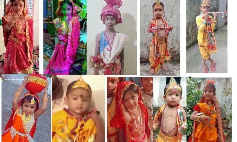 जन्माष्टमी आते ही बच्चो में बाल कृष्ण, राधा,यशोदा,वासुदेव ,सुदामा,बनने का खुमार छाने लगता है और सारे बच्चे अलग-अलग रूपो में सुसज्जित होकर घूमते दिखाई देते हैं,और उनकी भाव भंगिमाएं सबके मन को मोह लेती है