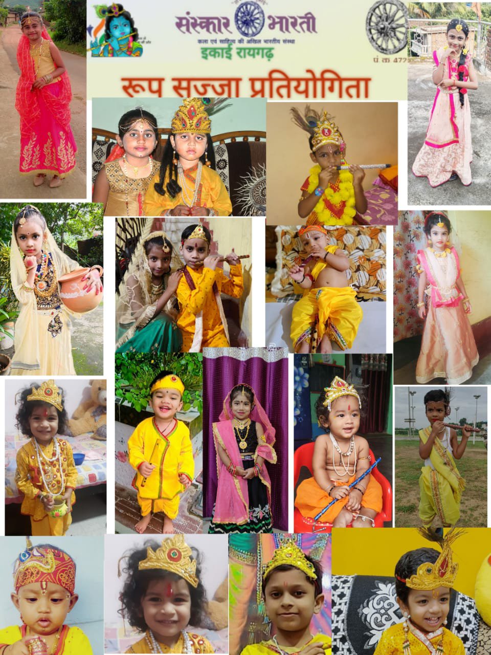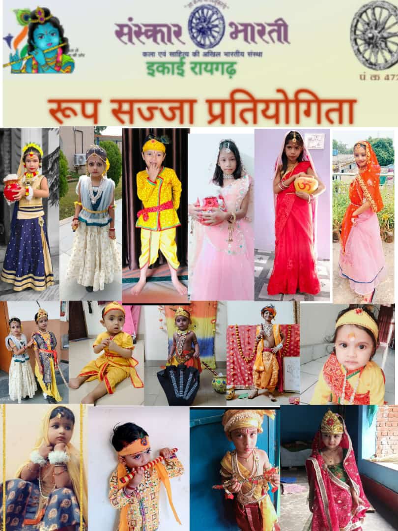 ,इसी तरह के परंपरा को संस्कारित करने के संस्कार भारती सदैव प्रयासरत रहता है जहाँ आये दिन विभिन्न कार्यक्रम आयोजित होते रहते हैं इसी क्रम में रायगढ़-इकाई द्वारा जन्माष्टमी के पावन अवसर पर रूप सज्जा कार्यक्रम का आयोजन किया गया,जहाँ रायगढ़ जिले के ही नहीं वरन् अलग-अलग जिलों के सैकड़ों बच्चों ने उत्साह दिखाया और सहभागिता निभाकर कार्यक्रम को सफल बनाया,कार्यक्रम के विजेताओं को स्मृति चिन्ह और प्रशस्ति पत्र देकर सम्मानित किया जाएगा,इस कार्यक्रम को अमलीजामा पहनाने में अजय पटनायक,गुलशन खम्हारी,तेजराम नायक,हरेन्द्र डनसेना,पुष्पा पटनायाक,पुरुषोत्तम गुप्ता,धनेश्वरी देवांगन,सुशीला साहू,प्रीति रात्रे,प्रदीप बेहरा,इंदु साहू,सुखदेव राठिया,कमलेश यादव,अशोक डनसेना,मंदाकिनी पटनायक,यशपाल दास तथा राम पटनायक आदि ने अपनी भूमिका निभाई जिन्हें उत्कृष्ट कार्य के लिए सुभदा तामस्कर हेमंत मोहलिकर,मनोज श्रीवास्तव,सुधा देवांगन,आशा मेहर ‘किरण’ और अरविंद सोनी जी ने शुभकामनाएं भेजी हैं।