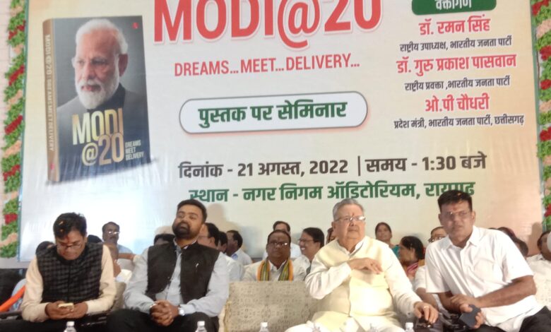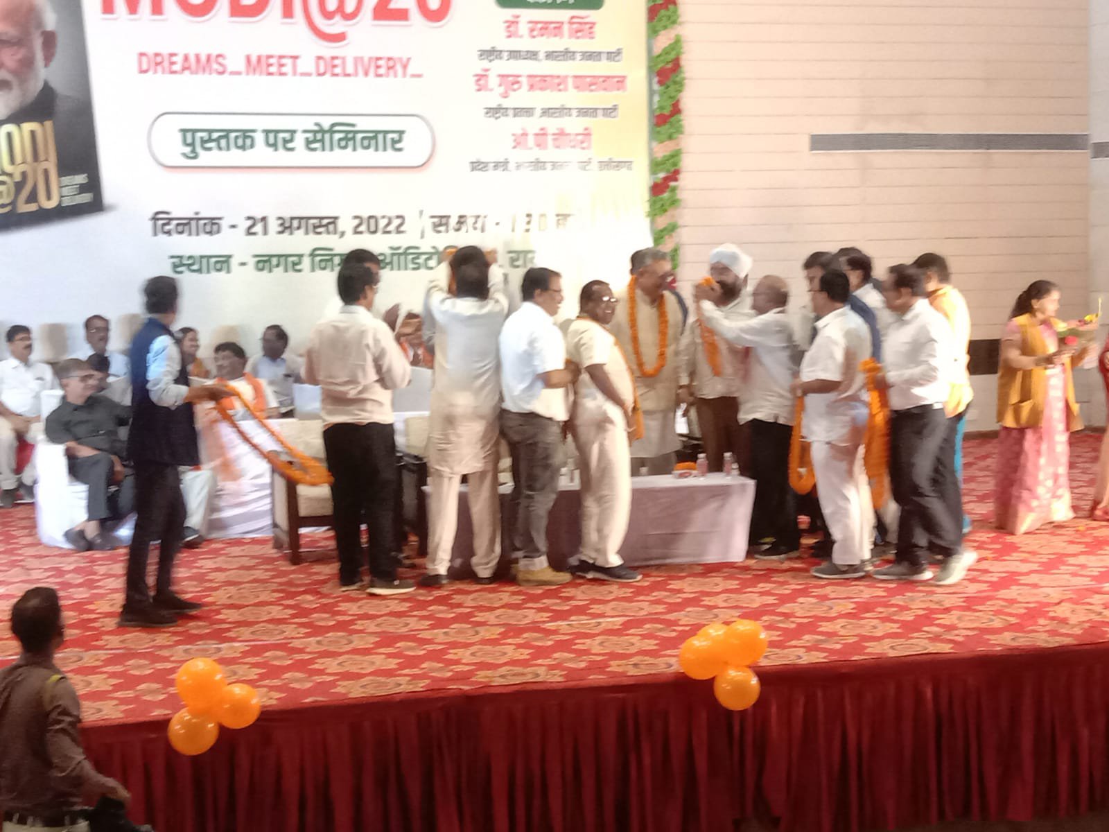 शहर के नगर निगम ऑडिटोरियम सभागृह में भारतीय जनता पार्टी द्वारा देश के प्रधानमंत्री नरेंद्र मोदी पर अपने क्षेत्र के दिग्गजों द्वारा लिखे गए लेखों के संकलन के रूप में आई पुस्तक मोदी @20 ड्रीम्स मीट डिलीवरी के ऊपर सेमिनार का आयोजन किया गया ।
