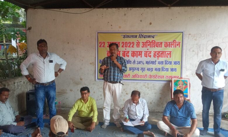 तमनार में कर्मचारी अधिकारी फेडरेशन द्वारा हड़ताल को सभी संगठनों का मिल रहा समर्थन
