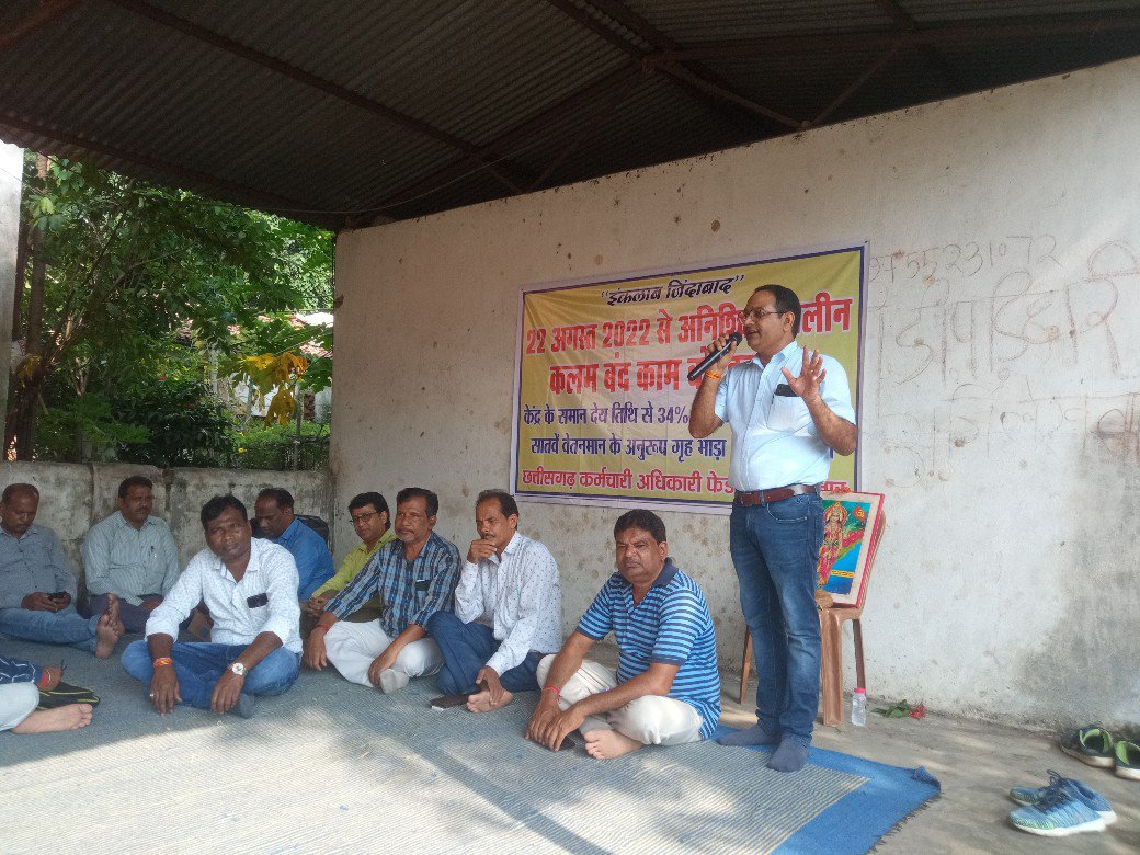 कर्मचारी अधिकारी फेडरेशन तमनार द्वारा 22 अगस्त 2022 से अनिश्चितकालीन हड़ताल कलम बन्द काम बंद हड़ताल में मुख्य मांग केंद्र के समान देय तिथि से 34 प्रतिशत महगाई भत्ता व सातवें वेतनमान के अनुरुप गृह भाड़ा दिए जाने को लेकर प्रस्तावित हड़ताल को सफल बनाने के लिए कर्मचारी अधिकारी फेडरेशन के नेताओं द्वारा समर्थन की अपील पर सभी मान्यता प्राप्त कर्मचारी संगठन कर्मचारियों का अच्छा प्रतिसाद मिल रहा है.