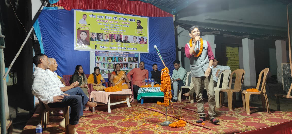 ग्राम सकरबोगा के साहित्य प्रेमी श्रोताओं ने , ब्रजेश के प्रयास और गुलशन खम्हारी ‘प्रद्युम्न’,अजय पटनायक ‘मयंक’ के संयोजन में गणेश उत्सव के अवसर पर विराट कवि सम्मेलन आयोजित की गई,जिसमे जाने माने साहित्यकार अरविंद सोनी सार्थक,सुधा देवांगन ‘सूची’,अजय पटनायक ‘मयंक’,तेजराम नायक ‘तेज’ गुलशन खम्हारी ‘प्रद्युम्न’ सुखदेव राठिया “वनगिहा”, नेहा ठेठवार ‘चिंगारी’, केशिका साहू,लालन प्रधान,संतोष सा, ऋषिकेश,ने अपने-अपने काव्य रस से सभी श्रोताओं को मंत्र मुग्ध कर दिया।