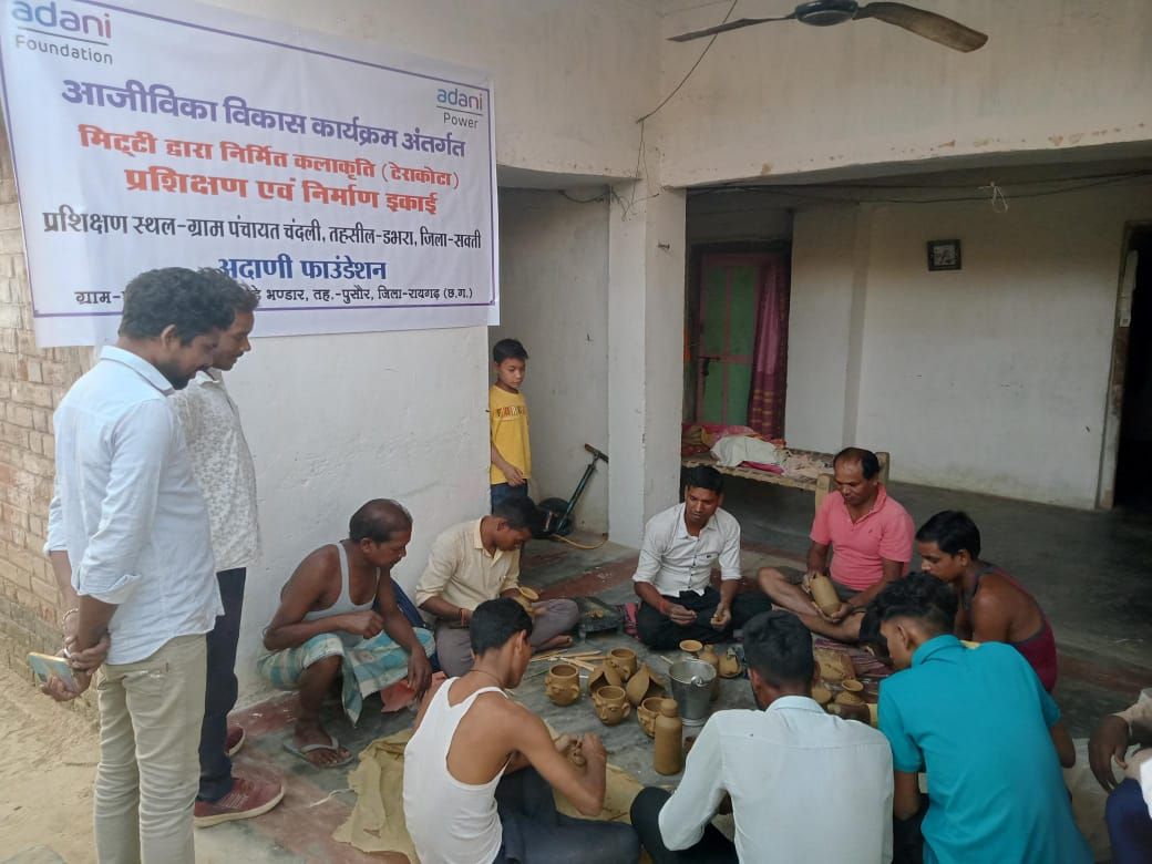 27 जनवरी 2024: अदाणी फाउंडेशन ने प्रदेश के पुसौर और डभरा ब्लॉक में स्थानीय कुम्हारों के आय संवर्धन और तेजी से लुप्त होती कला को बचाने का बीड़ा उठाया है। अदाणी पॉवर लिमिटेड, रायगढ़ के सामाजिक सहभागिता के अंतर्गत क्षेत्र के आसपास के कुम्हारों को मिट्टी द्वारा निर्मित विभिन्न कलाकृतियों की आधुनिक तकनीक, टेराकोटा कला को सिखाने द्विमासिक प्रशिक्षण कार्यक्रम आयोजित किया है।