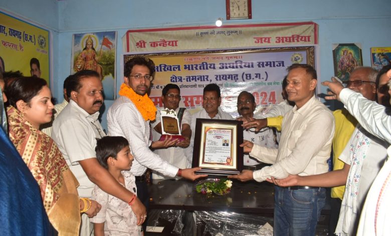 अघरिया समाज क्षेत्र तमनार अध्यक्ष यादलाल नायक ने कहाकि हमारे समाज में सभी क्षेत्र के प्रतिभाओ का सम्मान किया जाता है। अघरिया समाज तमनार के गौरव धर्मेन्द्र पटेल जी भारतीय वन सेवा परीक्षा 2023 (IFOS) में अखिल भारतीय रैंक 92 के साथ चयनित होकर क्षेत्र व समाज का मान बढाया है। उनके उच्च गुणवत्ता युक्त अध्ययन, कठिन परिश्रम, सकारात्मक सोच व कर्तव्यनिष्ठ उत्कृष्ट उपलब्धि हेतु सम्मानित किया गया है।साथ ही 10 वी 12 वी में 90 प्रतिशत से अधिक प्रतिभाशाली बच्चों को भी सम्मानित किया गया है जिससे समाज के अन्य बच्चे भी इनसे प्रेरणा लेकर उत्साहित हो। केंद्रीय प्रतिनिधि बिहारी लाल पटेल,केंद्रीय प्रवक्ता व क्षेत्रीय संयोजक दिनेश कुमार चौधरी,मुकुन्दमुरारी पटनायक,किंकर चौधरी ने धर्मेन्द्र पटेल का भारतीय वन सेवा में चयनित होने पर शुभकानाएं दी गई।