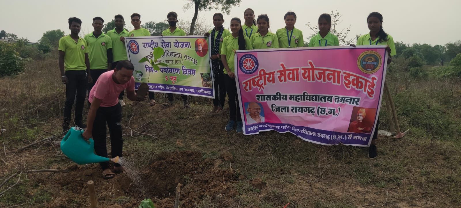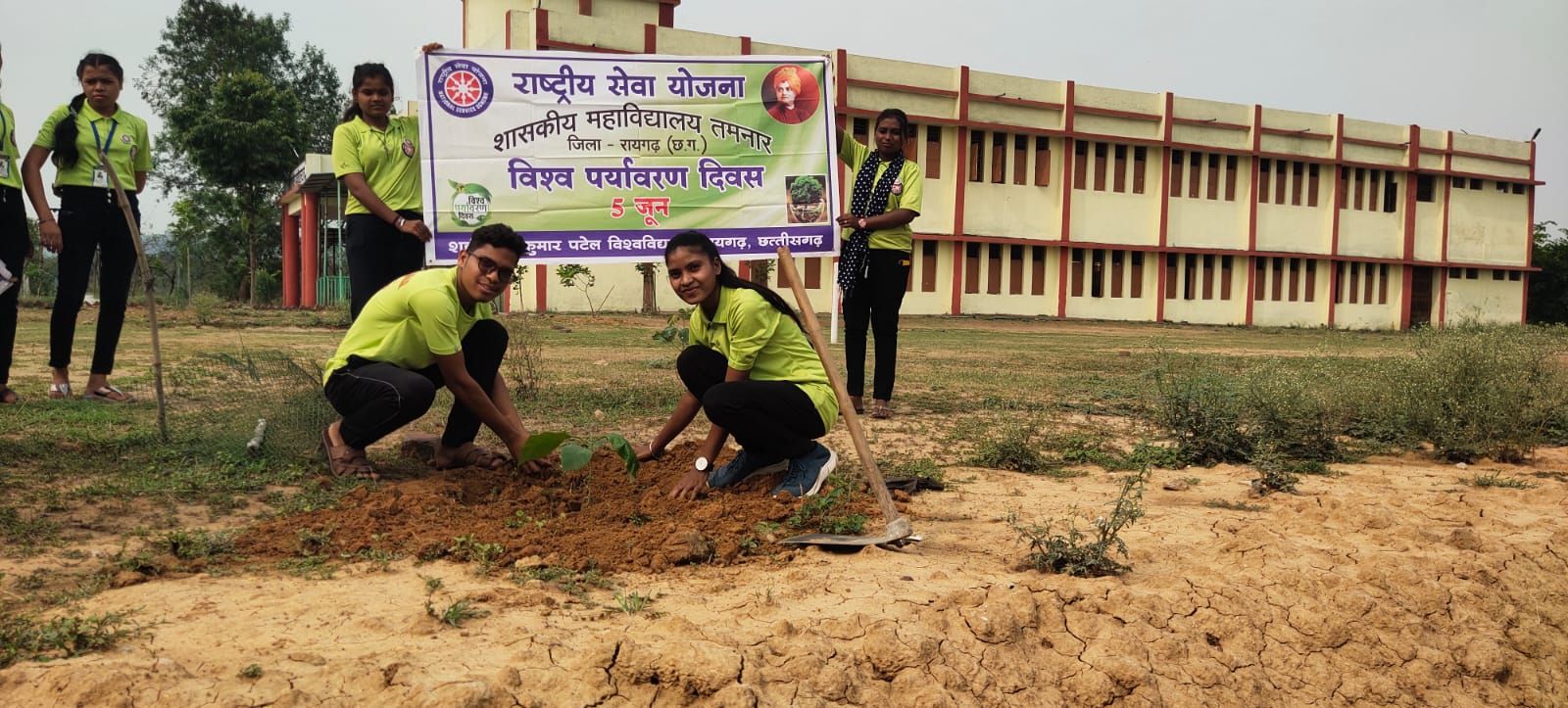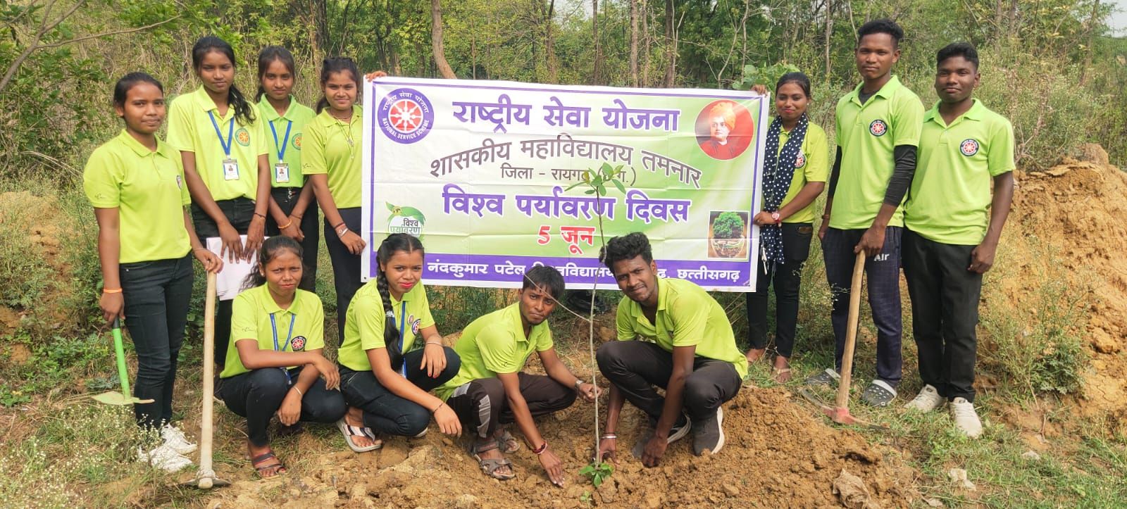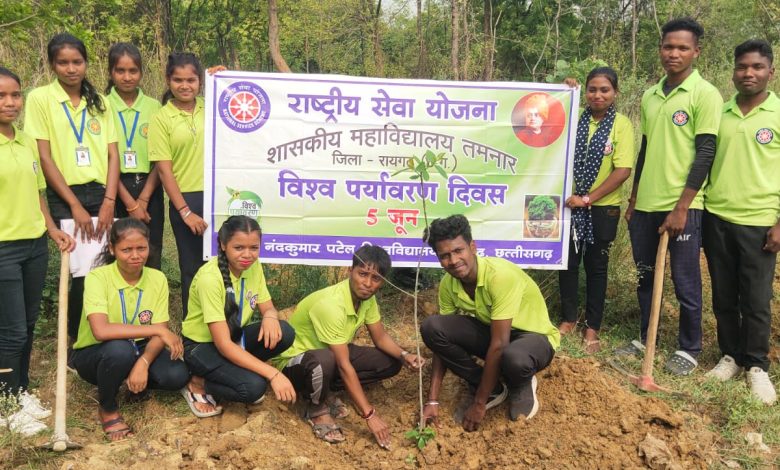 शहीद नंदकुमार पटेल विश्वविद्यालय से संबद्ध राष्ट्रीय सेवा योजना इकाई शासकीय महाविद्यालय तमनार के स्वयंसेवकों द्वारा विश्व पर्यावरण दिवस के अवसर पर दिनांक 05 जून 2024 को महाविद्यालय परिसर के नजदीक 10 छायादार पौधों का रोपण किया गया।