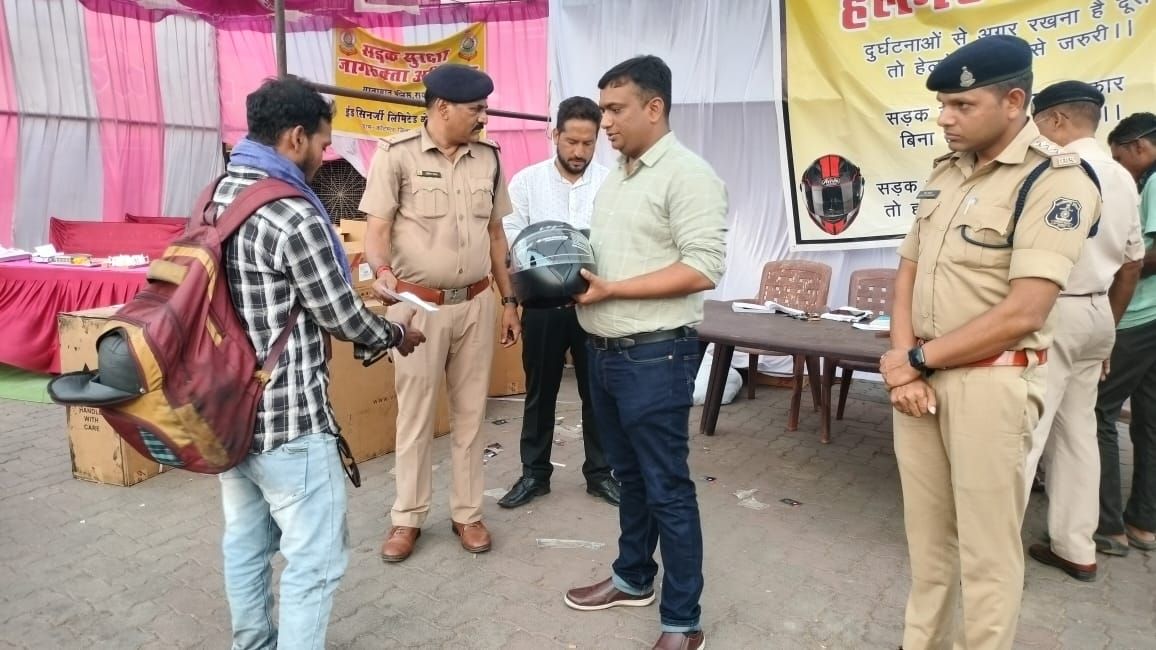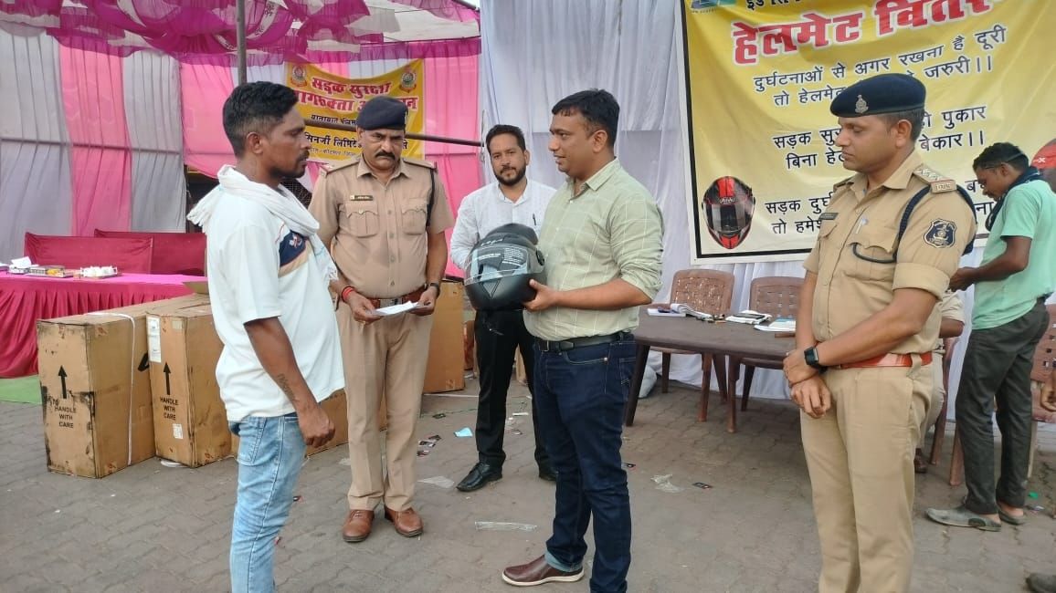 हेलमेट पहनना है जरूरी” : पुलिस अधीक्षक ने बिना हेलमेट वाहन चलाते पकड़े गए चालकों को दिए समझाइश और किये हेलमेट का वितरण