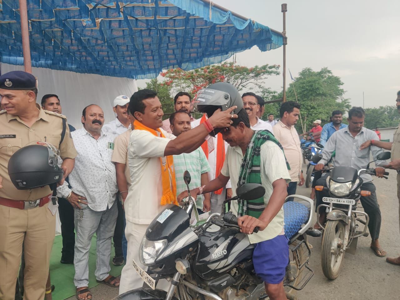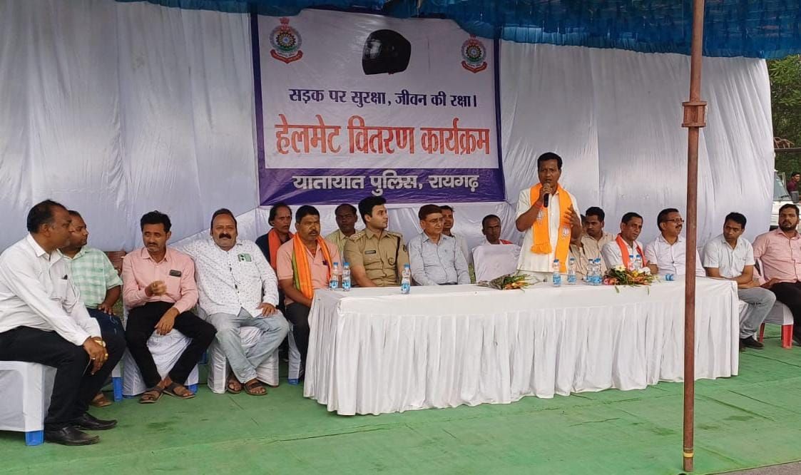 जिला पुलिस के हेलमेट वितरण कार्यक्रम में शामिल हुए रायगढ़ सांसद श्री राधेश्याम राठिया