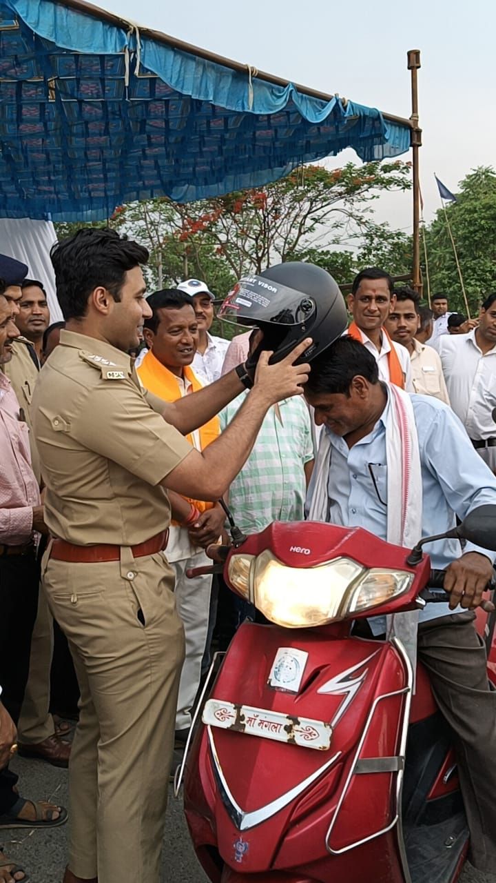 ●बिना हेलमेट वाहन चालकों को हेलमेट वितरण कर यातायात नियमों का पालन करने का दिए संदेश