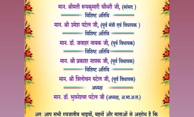 @ वित्त मंत्री ओ. पी. चौधरी,सांसद रूपकुमारी चौधरी,पूर्व मंत्री उमेश पटेल सहित अन्य जनप्रतिंनिधि एवं पदाधिकारी होंगे शामिल