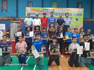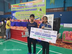 रायपुर में आयोजित 23वीं छत्तीसगढ़ राज्य सब जूनियर बैडमिंटन चैंपियनशिप 2024 का समापन 24 अगस्त को हुआ, जिसमें रायगढ़ के बैडमिंटन खिलाड़ियों ने अपने उत्कृष्ट प्रदर्शन से जिले का नाम रोशन किया। इस प्रतियोगिता में रायगढ़ की उभरती हुई प्रतिभा आन्या विजयवर्गीय और हर्षवर्द्धन सिंह की जोड़ी ने बेहतरीन खेल का प्रदर्शन करते हुए फाइनल तक का सफर तय किया और उपविजेता का खिताब अपने नाम किया। वहीं, लड़कों के डबल्स अंडर 15 वर्ग में रायगढ़ के अनुराग बघेल और रायपुर के सुशांत ने भी फाइनल में जगह बनाकर उपविजेता का स्थान प्राप्त किया।