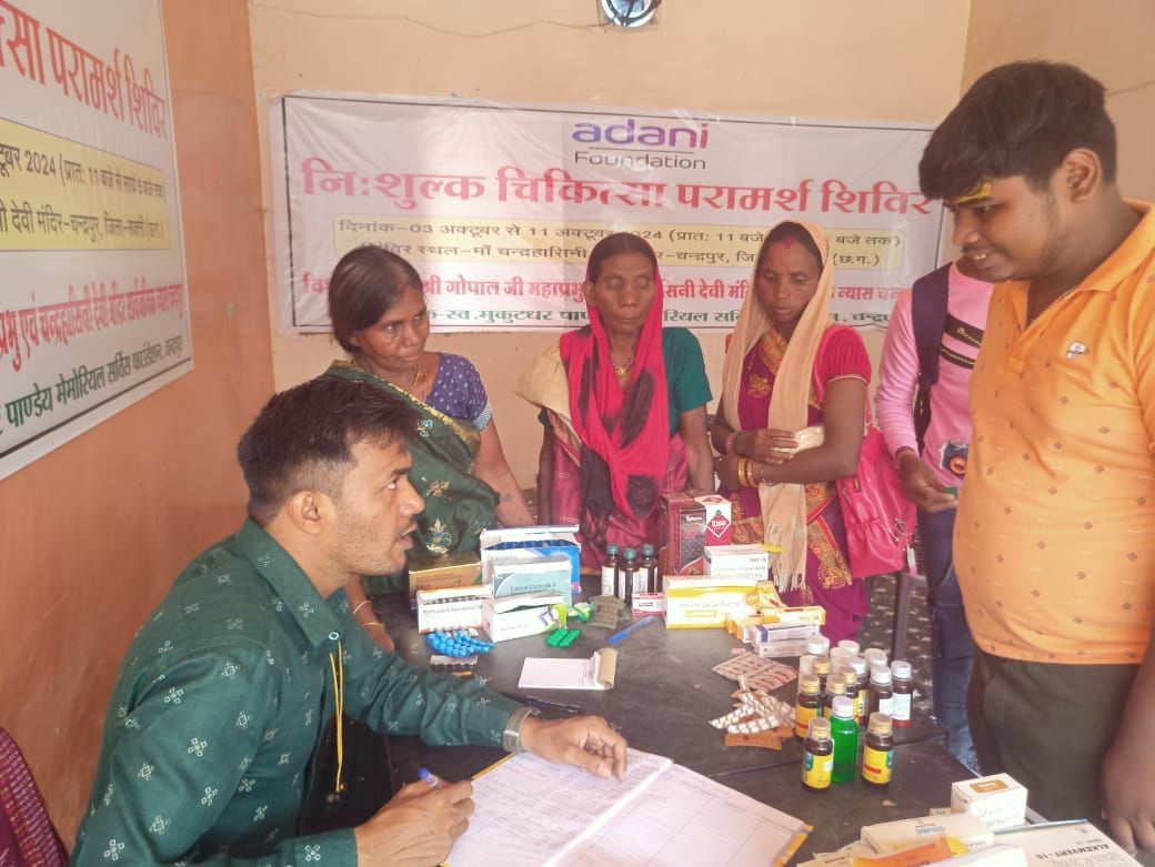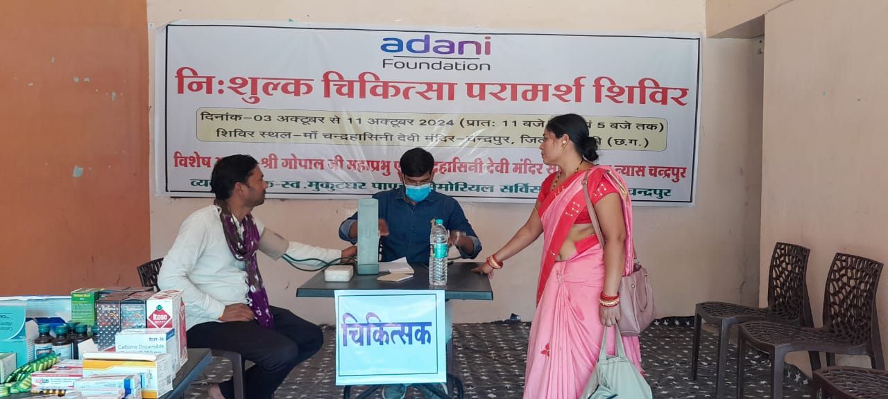 शारदीय नवरात्र के अवसर पर जिले के पुसौर प्रखण्ड में अदाणी फाउंडेशन द्वारा माँ चंद्रहासिनी देवी के मंदिर में नौ दिवसीय निःशुल्क चिकित्सा परामर्श शिविर का आयोजन किया गया, स्वास्थ्य जांच के साथ निःशुल्क दवाईयां भी प्रदान की गई। अदाणी पॉवर लिमिटेड, रायगढ़ की सीएसआर मद के तहत चंद्रपुर शहर में 3 अक्टूबर से 11 अक्टूबर 2024 तक आयोजित इस स्वास्थ्य शिविर का लाभ 500 से ज्यादा भक्तों ने लिया।