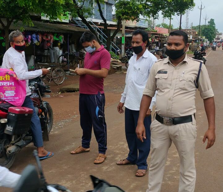 रायगढ़/ बिना मास्क के घूमते लोगों पर लगातार हो रही कार्यवाही…सोशल डिस्टेंसिग का पालन नहीं कराने वाले दुकान पर चालान…!!