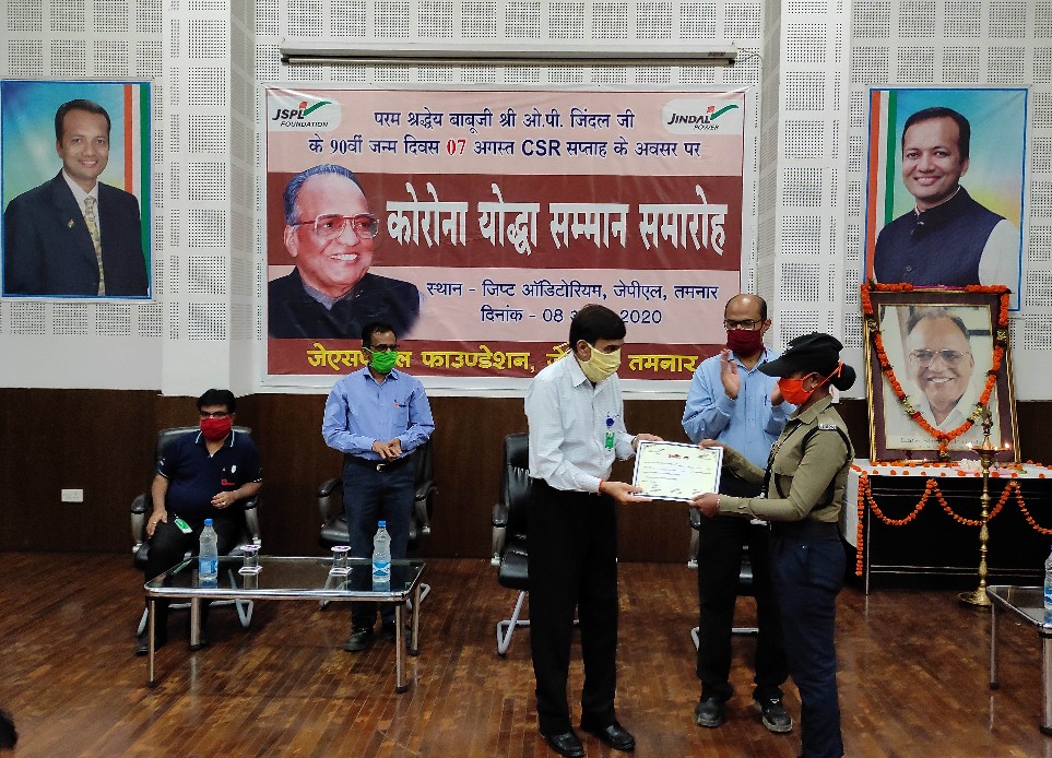 जेपीएल तमनार में कोरोना योद्धाओं का सम्मान समारोह आयोजित सीएसआर सप्ताह में जेपीएल के 40 कोरोना योद्धाओं प्रशस्ति पत्र से किया गया सम्मानित