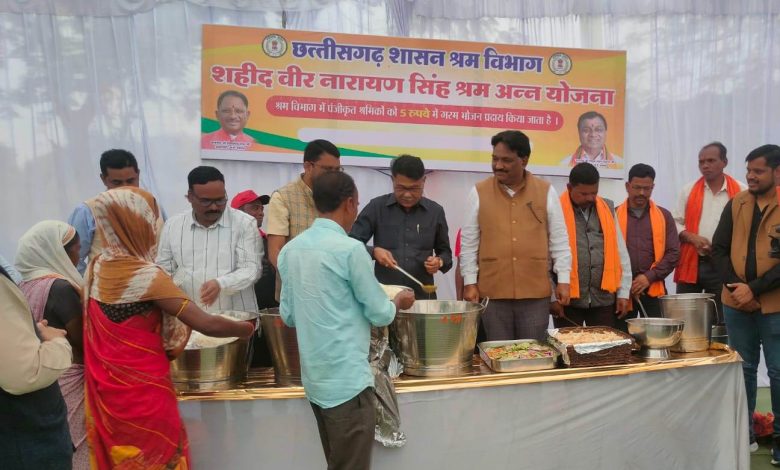 शहीद वीर नारायण सिंह श्रम अन्न योजना अंतर्गत नवीन केंद्र का शुभारंभ *योजनान्तर्गत 227 श्रमिकों को 56 लाख से अधिक की राशि डीबीटी के माध्यम से हुआ हस्तांतरित