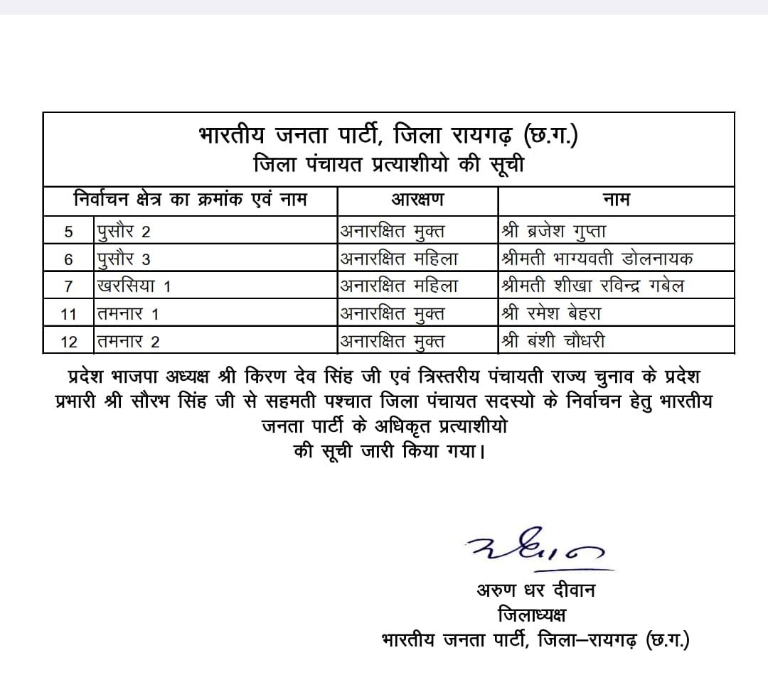 जिला पंचायत सदस्य तमनार 1 से रमेश बेहरा भाजपा प्रत्याशी घोषित