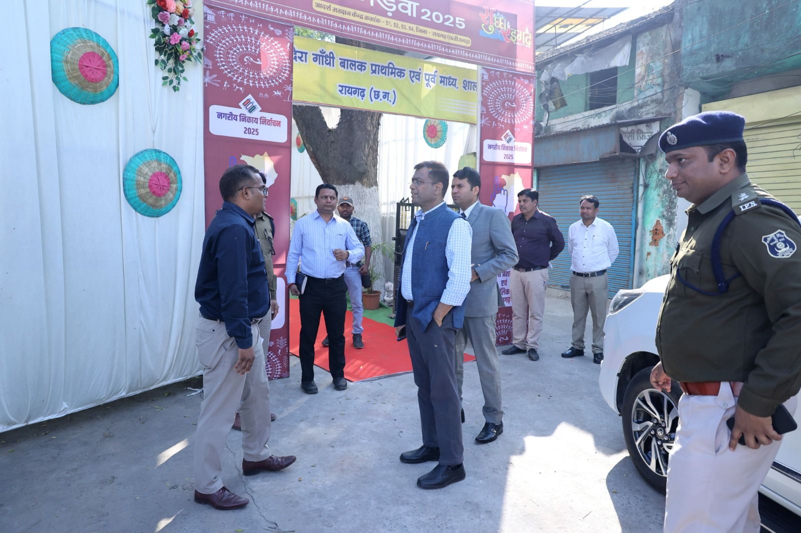 राज्य निर्वाचन आयुक्त श्री अजय सिंह ने जिले में मतदान व मतगणना की तैयारियों का लिया जायजा*जिले में सुचारू व शांतिपूर्ण निर्वाचन संपन्न कराने की है पूरी तैयारी-राज्य निर्वाचन आयुक्त श्री अजय सिंह*राज्य निर्वाचन आयोग की टीम मतदान पूर्व तैयारियों की समीक्षा करने पहुंची रायगढ़*चुनई मड़वा के थीम पर बने आदर्श मतदान केन्द्र का भी किया निरीक्षण, मतदाता जागरूकता के प्रयासों की सराहना कीरायगढ़ @संदेशा 24राज्य निर्वाचन आयुक्त श्री अजय सिंह आज रायगढ़ जिले में प्रवास के दौरान कहा कि नगरीय निकायों में निर्वाचन का कार्य सुचारू एवं शांतिपूर्ण तरीके से संपन्न कराने के लिए जिला प्रशासन द्वारा व्यापक स्तर पर तैयारी की गई है। मतदान सामग्री वितरण के साथ सुरक्षा के इंतजाम किए गए है। मतगणना को लेकर भी तैयारियां पूरी है। राज्य निर्वाचन आयुक्त श्री अजय सिंह आज रायगढ़ में मतदान पूर्व तैयारियों का जायजा लेने पहुंचे थे। इस दौरान प्रेक्षक श्री.के.डी.कुंजाम, कलेक्टर श्री कार्तिकेया गोयल, नोडल अधिकारी पुलिस श्री ओ.पी.पाल, सचिव राज्य निर्वाचन आयोग श्री सर्वेश्वर नरेन्द्र भुरे, पुलिस अधीक्षक श्री दिव्यांग पटेल, सीईओ जिला पंचायत श्री जितेन्द्र यादव उपस्थित रहे।