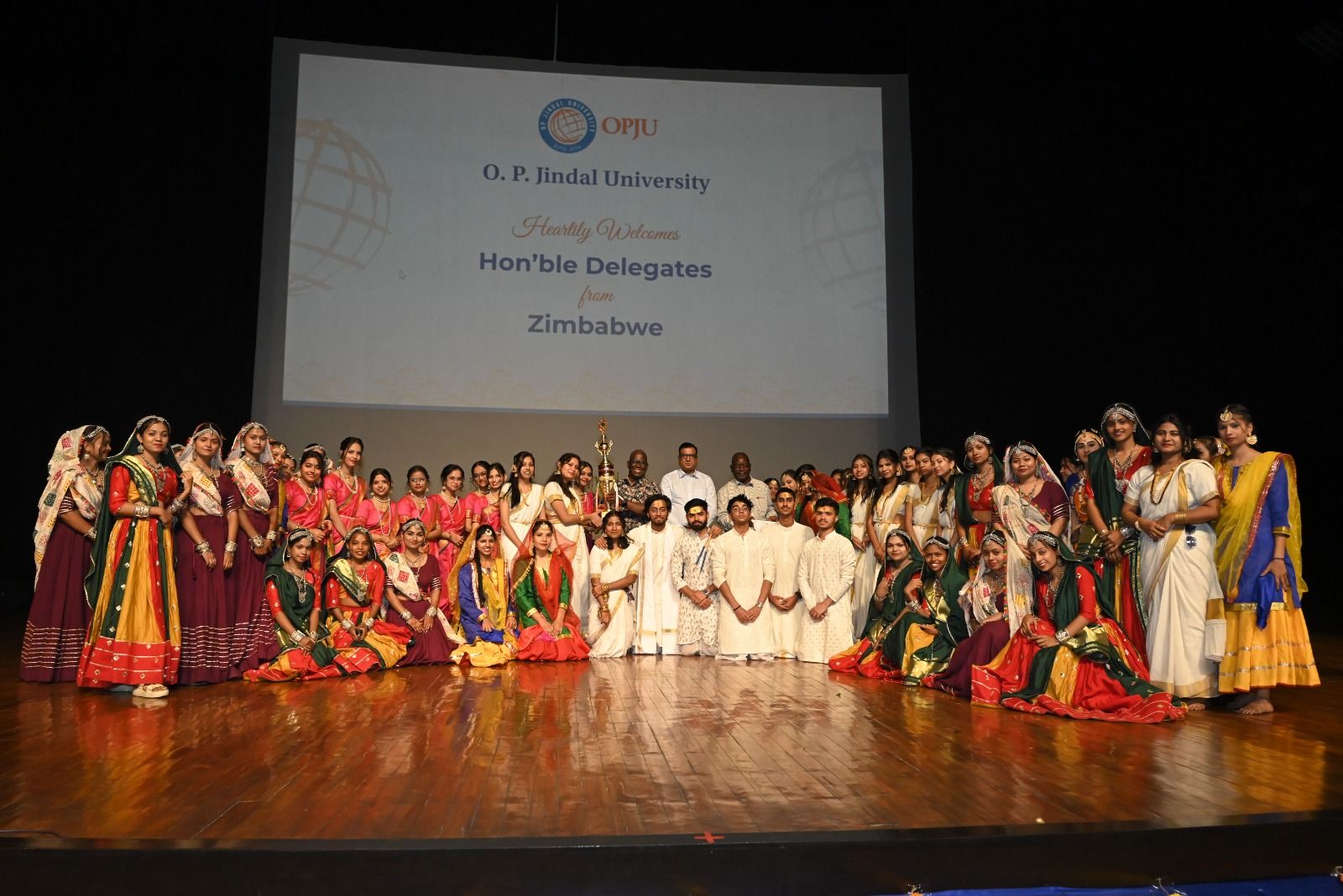 ओपीजेयू में जिम्बाब्वे के प्रतिनिधिमंडल के दौरे के हिस्से के रूप में, छात्रों द्वारा एक जीवंत सांस्कृतिक कार्यक्रम आयोजित किया गया, जिसमें विश्वविद्यालय समुदाय के भीतर समृद्ध विविधता और प्रतिभा को उजागर किया गया। इस कार्यक्रम संगीत और नृत्य सहित पारंपरिक और सांस्कृतिक प्रदर्शनों का मिश्रण था, जिसने भारत की जीवंत सांस्कृतिक विरासत को प्रदर्शित किया। छात्रों के प्रदर्शन को प्रतिनिधिमंडल ने बहुत उत्साह और सराहना के साथ देखा एवं सभी लोग प्रदर्शित रचनात्मकता और ऊर्जा से पूरी तरह प्रभावित हुए।