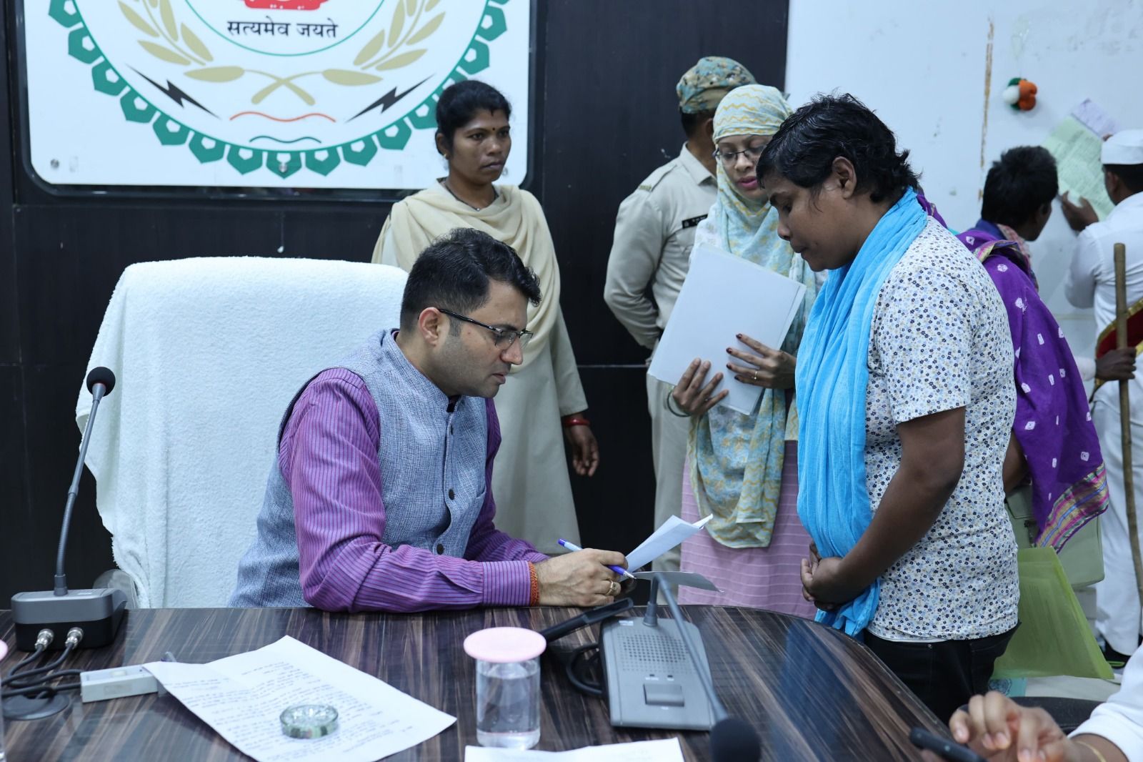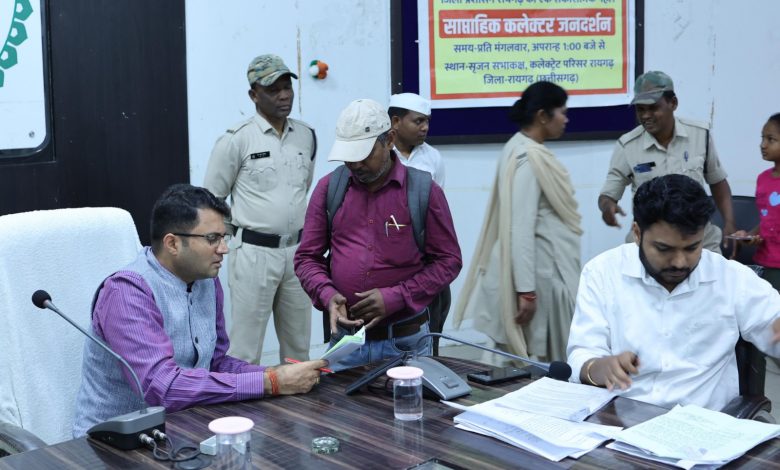 कलेक्टोरेट के सृजन सभाकक्ष में प्रत्येक मंगलवार को आयोजित जनदर्शन में आज जिले भर के लोग अपनी शिकायत एवं मांगों के संबंध में आवेदन लेकर पहुंचे थे। उन्होंने कलेक्टर श्री कार्तिकेया गोयल के सामने अपनी समस्याएं रखी। जिस पर कलेक्टर श्री गोयल ने विभागीय अधिकारियों को आवेदनों का जांच कर प्राथमिकता से निराकरण के निर्देश दिए। इस दौरान एडीएम सुश्री संतन देवी जांगड़े, अपर कलेक्टर श्री रवि राही, डिप्टी कलेक्टर श्रीमती रेखा चंद्रा सहित विभागीय अधिकारी उपस्थित रहे।