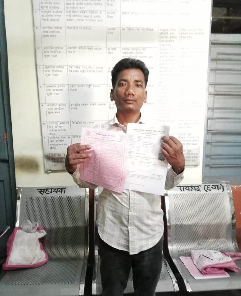 मुख्यमंत्री श्री विष्णु देव साय की मंशा अनुरूप रायगढ़ जिले में सुशासन तिहार में शासन की जनहितैषी योजनाओं को आमजन तक पहुंचाने के लिए कार्य किया जा रहा है। इसी क्रम में श्रम विभाग जिला रायगढ़ को सुशासन तिहार अंतर्गत प्राप्त आवेदनों के गुणवत्ता पूर्ण निराकरण किया जा रहा है। इसी कड़ी में ननसिया, रायगढ़ निवासी श्री सुन्दरलाल उरांव तथा श्रीमती अनीता बाई के द्वारा श्रम पंजीयन और योजना लाभ हेतु आवेदन किया गया था। इसका तत्काल निराकरण करते हुए श्रम पंजीयन किया जाकर हितग्राहियों को श्रमिक कार्ड प्रदान किया गया। साथ ही उन्हें योजनाओं से संबंधित ब्राउजर देकर विभिन्न योजनाओं पर भविष्य में पात्रता की जानकारी भी दी गई, जिसमें वे आवेदन कर लाभ प्राप्त कर सकेंगे। विभाग में महतारी जतन, छात्रवृत्ति, नोनी सशक्तिकरण, मृत्यु पर परिवार को सहायता, सियान योजना, पेंशन योजना साइकिल, सिलाई मशीन तथा अन्य उपकरण से संबंधित अनेक योजनाएं संचालित की जाती है। जिसका लाभ श्रमिक पंजीयन के माध्यम से लिया जा सकता है।