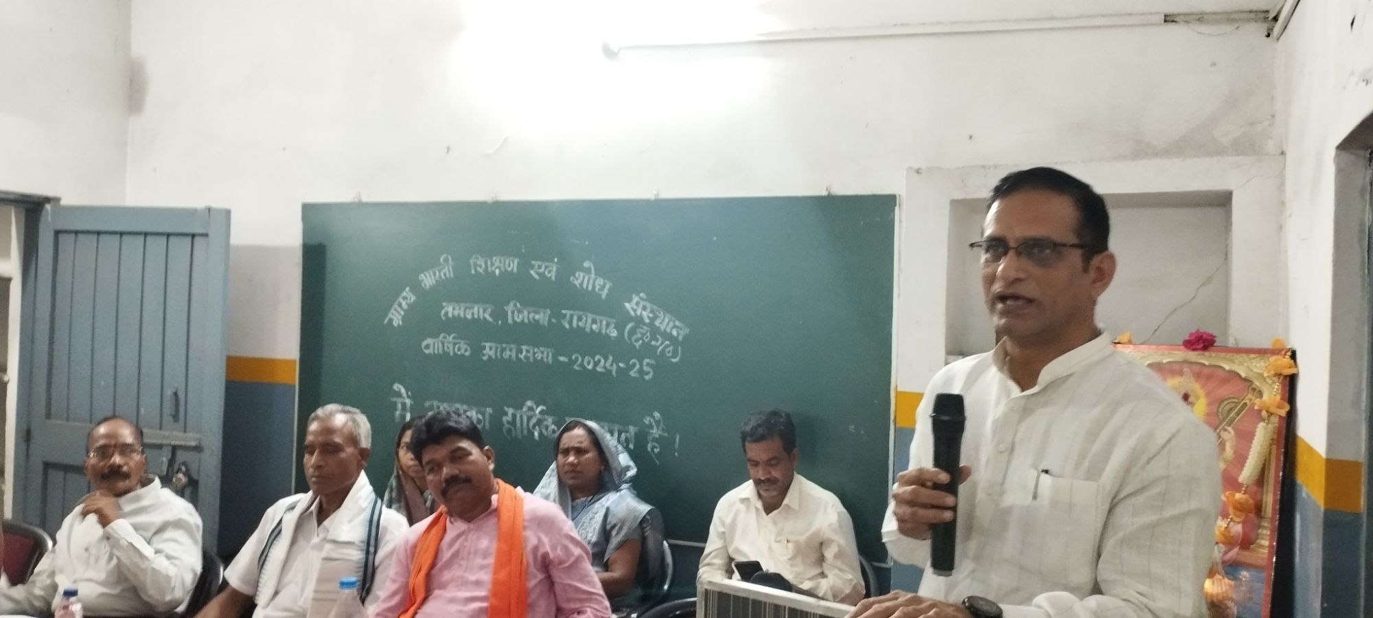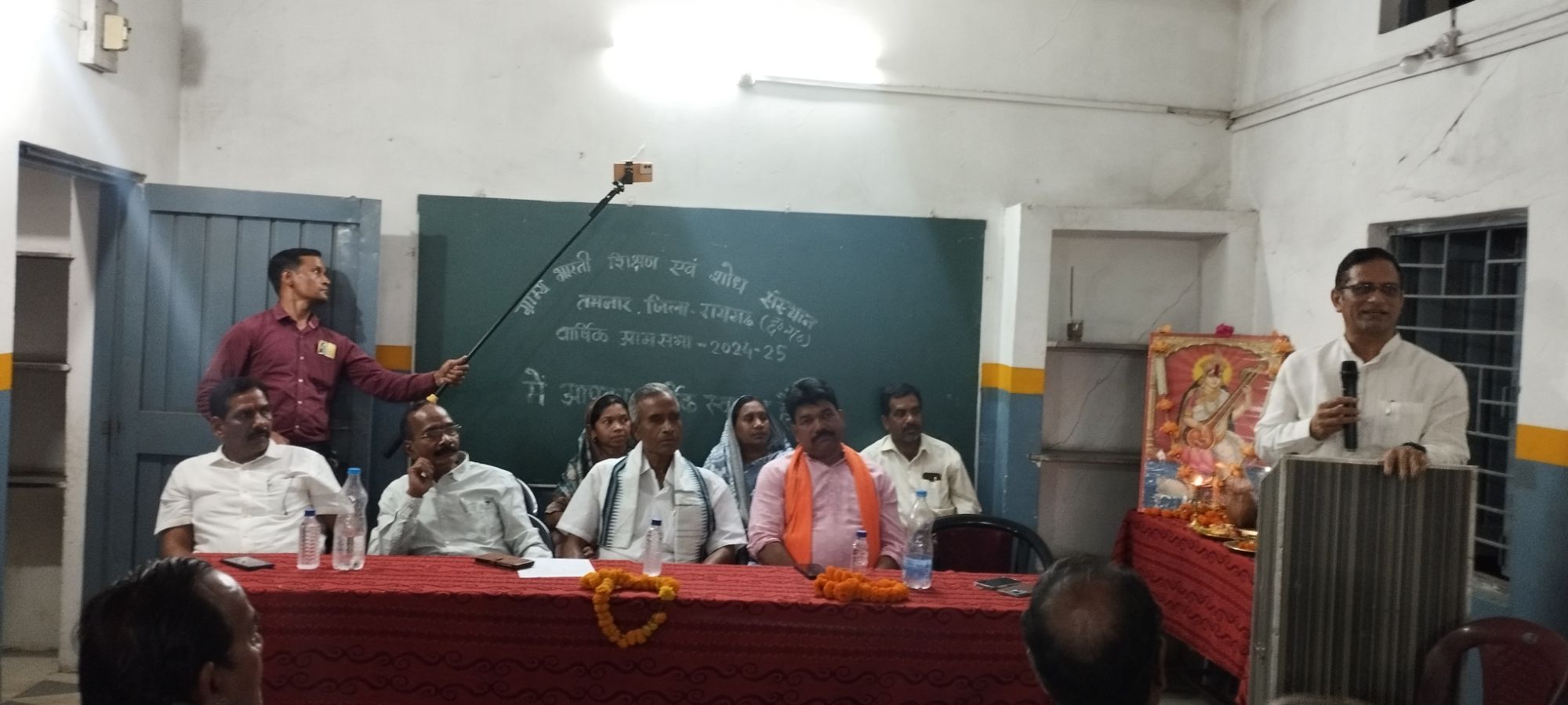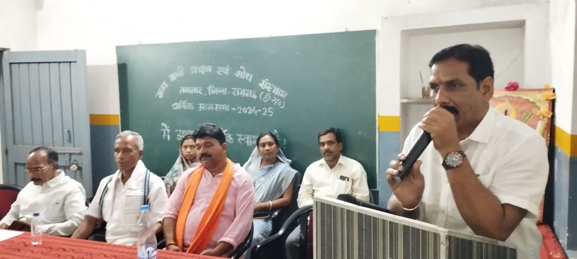तमनार @संदेशा 24 दुलेन्द्र पटेल 3.5.2025 केलो बनांचल आदिवासी बाहुल्य रायगढ़ व जशपुर जिले में शिक्षा एवं पर्यावरण विकास हेतु संकल्पित ग्राम्य भारती शिक्षण एवं शोध संस्थान तमनार से संबंद्ध विभिन्न शाखाओं द्वारा संचालित आदर्श ग्राम्य भारती उच्चतर माध्यमिक विद्यालयों हिन्दी माध्यम व ए.जी.बी. कान्वेन्ट अंग्रेजी माध्यम का वार्षिक आम सभा का आयोजन 2 मई को जिला पंचायत सदस्य बंशीधर चौधरी के मुख्य आतिथ्य,संस्कार पब्लिक स्कूल के मोटिवेटर रामचन्द्र शर्मा केन्द्रीय अध्यक्ष दिनेश कुमार गुप्ता के अध्यक्षता में आयोजित किया गया।