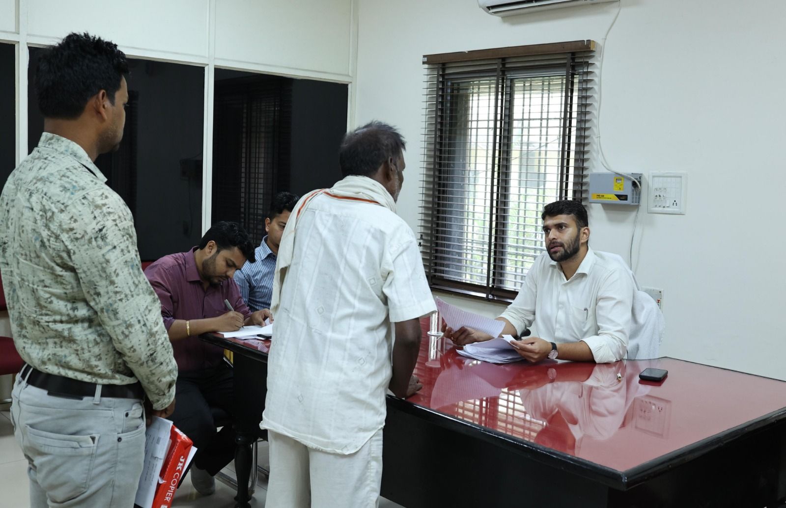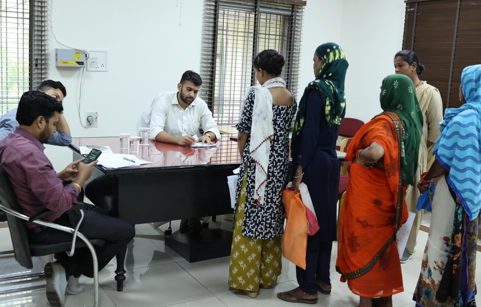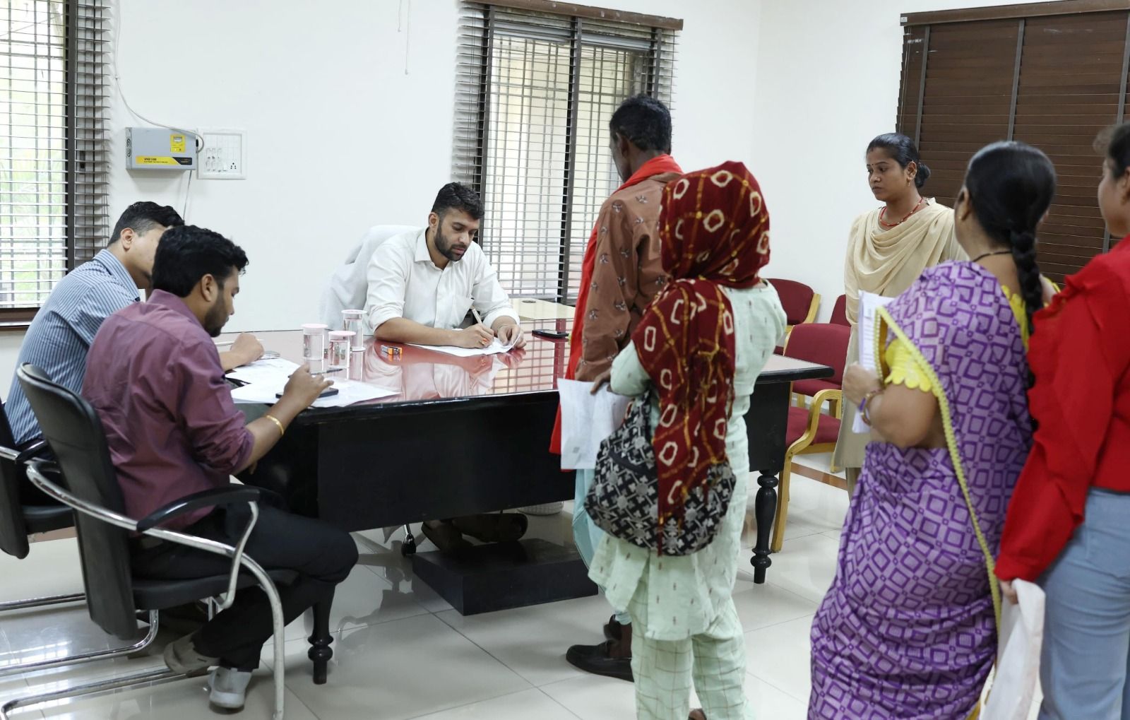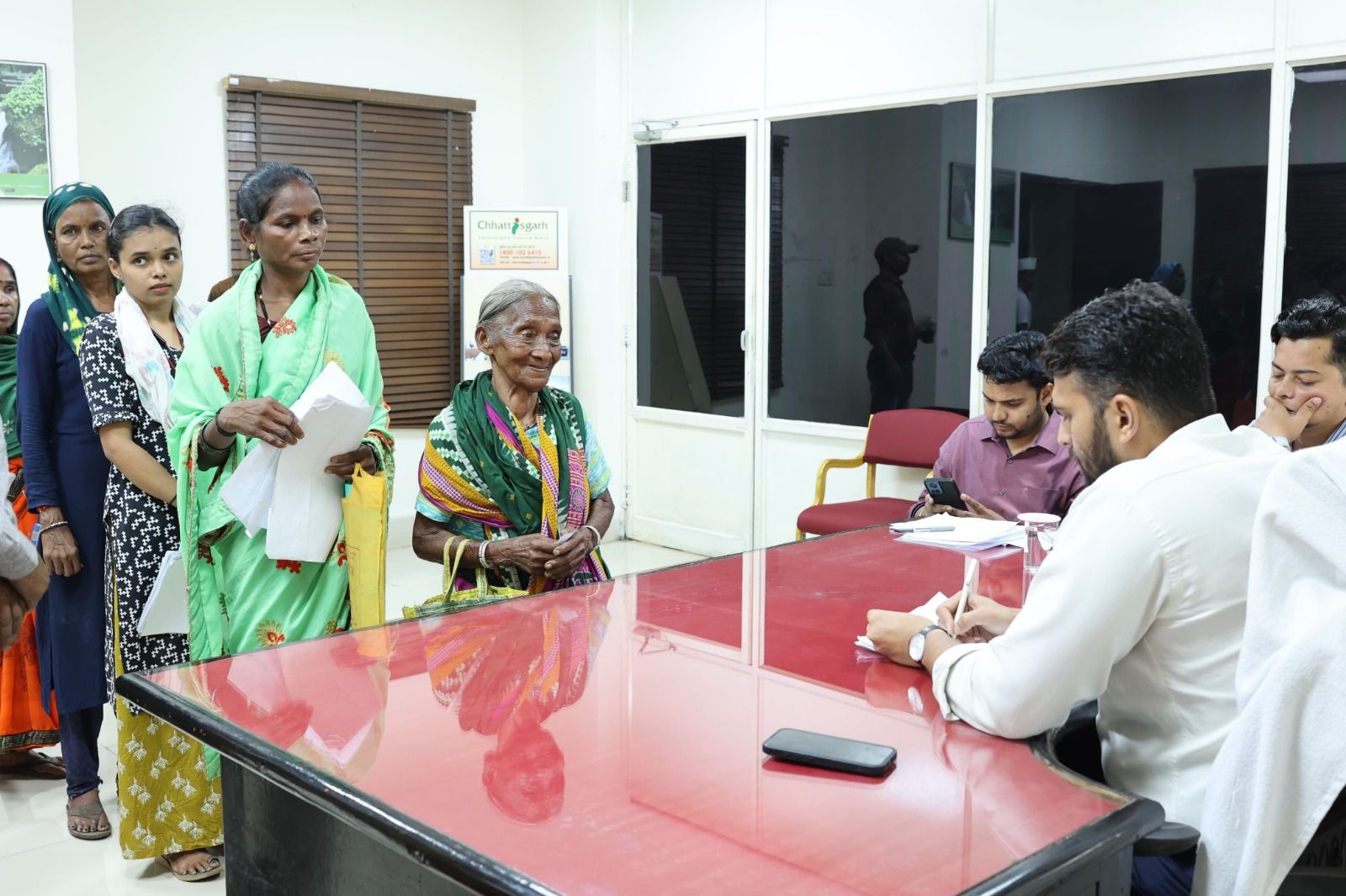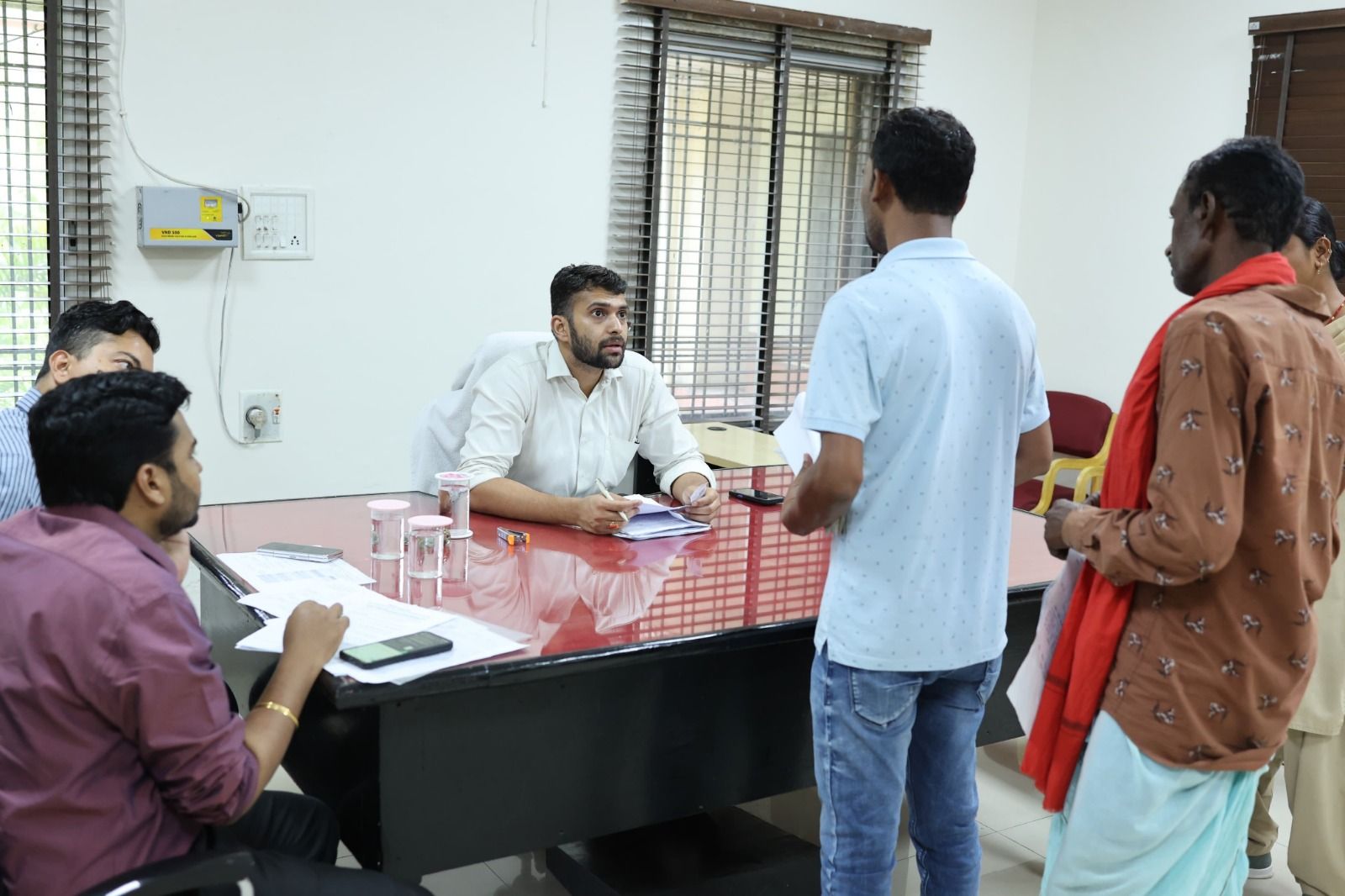 कलेक्टर श्री मयंक चतुर्वेदी ने आज कलेक्टर चेंबर के बाहर प्रतीक्षा कक्ष में आयोजित साप्ताहिक जनदर्शन में जिले भर के लोगों से मिलकर उनकी समस्याओं के संबंध में चर्चा कर जानकारी ली। उन्होंने आवेदकों के आवेदनों का त्वरित एवं गुणवत्तापूर्ण निराकरण सुनिश्चित करने के निर्देश दिए। जनदर्शन में आज जिले के विभिन्न क्षेत्रों से आये आवेदकों ने अपनी समस्याओं, मांगों और शिकायतों से संबंधित आवेदन प्रस्तुत किए। इस अवसर पर अपर कलेक्टर श्री रवि राही एवं श्री अपूर्व प्रियेश टोप्पो उपस्थित रहे।