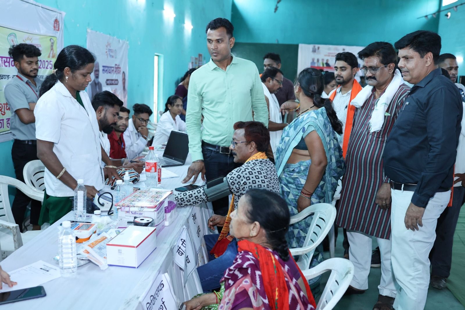 नगरीय निकाय अंतर्गत रायगढ़ स्टेडियम बोईरदादर में समाधान शिविर का आयोजन किया गया। जिसमें महापौर श्री जीवर्धन चौहान एवं सभापति श्री डिग्री लाल साहू भी शामिल हुए। इस दौरान उन्होंने विभागीय स्टॉल का अवलोकन करते हुए प्राप्त आवेदनों एवं उनके निराकरण की स्थिति की भी जानकारी ली। उन्होंने स्वास्थ्य विभाग के स्टॉल में पहुंच कर स्वास्थ्य जांच का लाभ भी लिया।