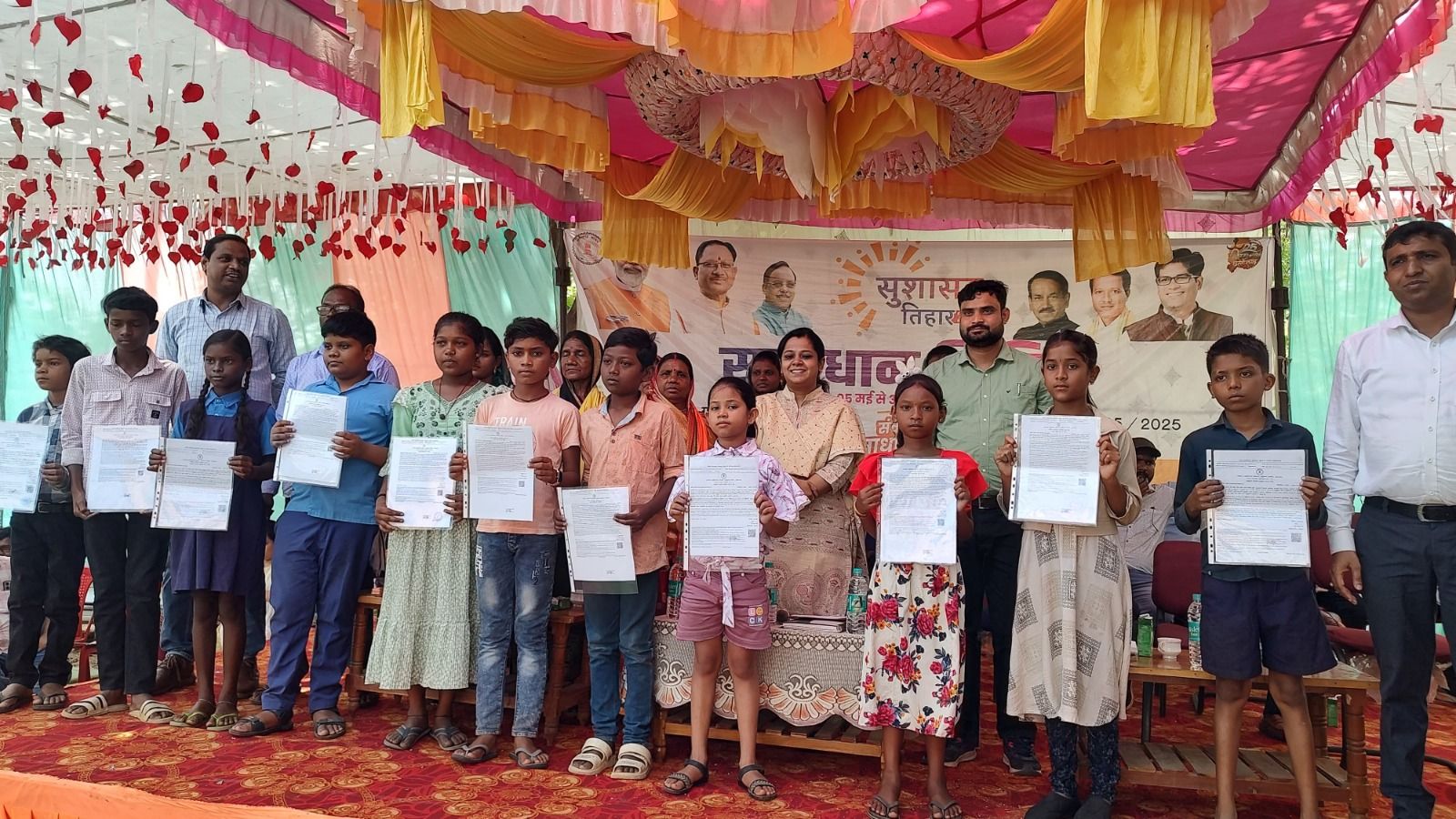 धरमजयगढ़ के खम्हार में आयोजित शिविर में शासकीय प्राथमिक शाला नेवारडीह संकुल क्रिन्धा अंतर्गत 5 एवं प्राथमिक शाला कमोसीनडांड संकुल चाल्हा अंतर्गत तीन विद्यार्थियों का जाति प्रमाण-पत्र बनाया गया। इस अवसर पर डीडीसी पूर्णिमा लाला बैगा, हरिशचंद्र राठिया, जनपद अध्यक्ष श्रीमती लीनव राठिया, जनपद उपाध्यक्ष शिशुपाल गुप्ता, बीडीसी मैना बाई राठिया, यशवंत राठिया, जनकराम राठिया, धुहनी बाई बैगा, भरत साहू, टीकाराम पटेल, गोकुल यादव सहित स्थानीय जनप्रतिनिधि, ग्रामीणजन एवं अधिकारी-कर्मचारी उपस्थित रहे।