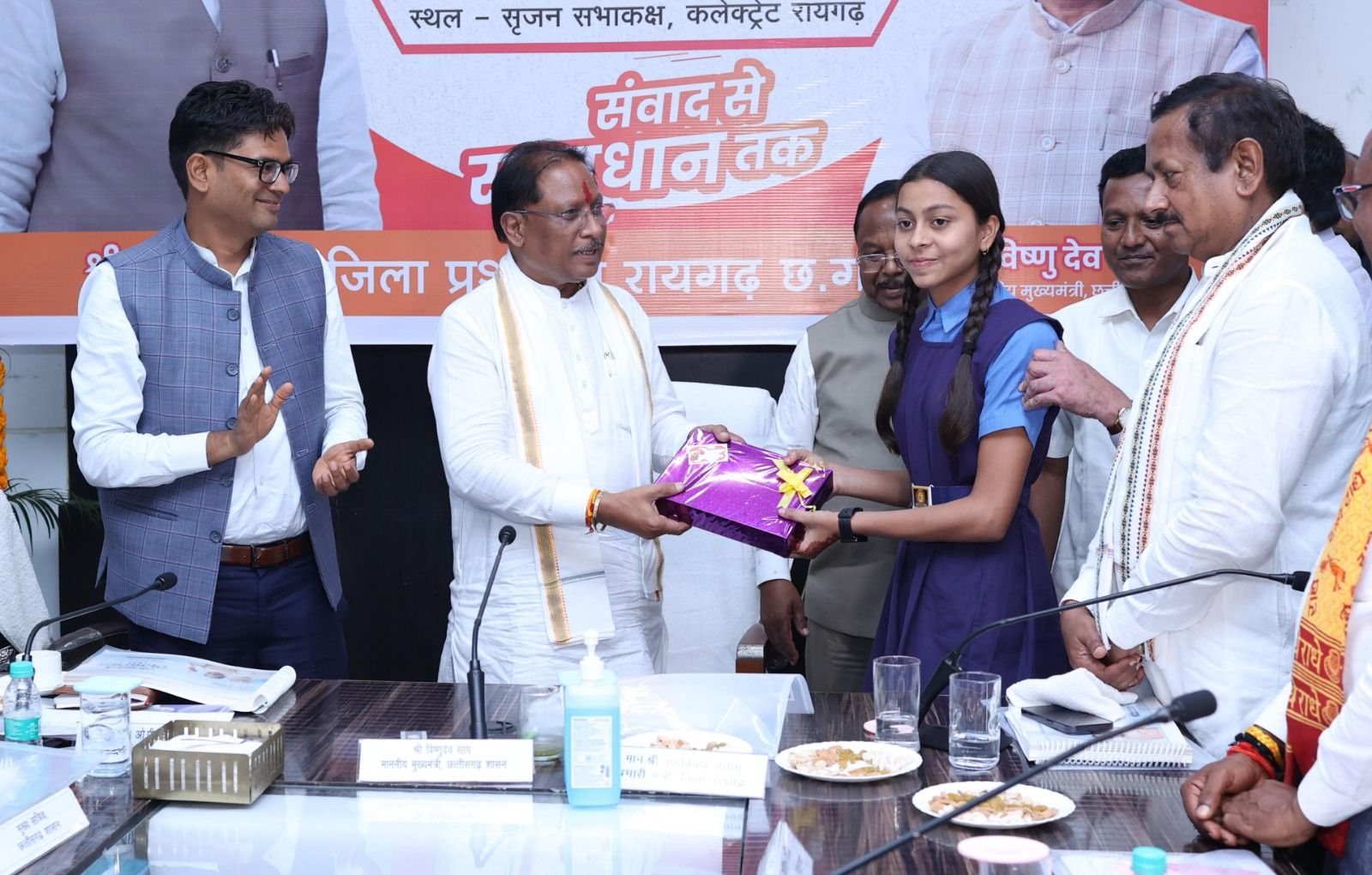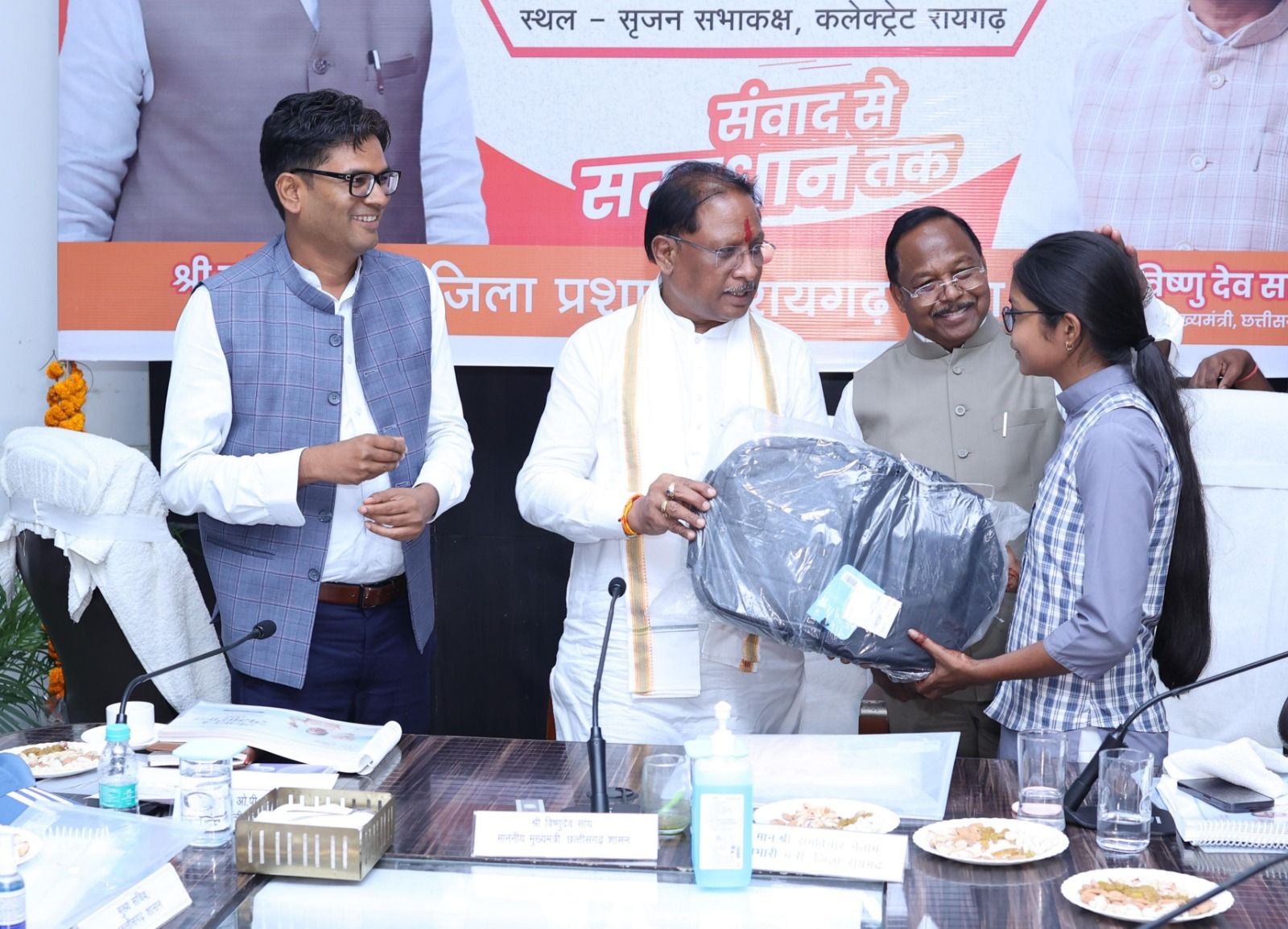 मुख्यमंत्री श्री विष्णुदेव साय ने 10 वीं-12 वीं के मेरिट में स्थान बनाने वाले जिले के 5 छात्रों को प्रदान किया लैपटाप*एनएमएमएस परीक्षा में राज्य स्तर की मेरिट में प्रथम स्थान प्राप्त करने वाली छात्रों को दिया टैबरायगढ़ @संदेशा 24मुख्यमंत्री श्री विष्णुदेव साय आज सुशासन तिहार में रायगढ़ प्रवास के दौरान रायगढ़ से कक्षा 10 वीं और 12 वीं के मेरिट लिस्ट में स्थान बनाने वाले पांचों छात्रों से मुलाकात की। उन्होंने छात्रों की इस सफलता पर बधाई देते हुए सभी को लैपटाप प्रदान किया। इस अवसर पर कृषि मंत्री एवं जिले के प्रभारी मंत्री श्री रामविचार नेताम, वित्त मंत्री श्री ओ.पी.चौधरी, लोकसभा सांसद श्री राधेश्याम राठिया, राज्यसभा सांसद श्री देवेन्द्र प्रताप सिंह, महापौर श्री जीवर्धन चौहान व सभापति श्री डिग्री लाल साहू उपस्थित रहे।
