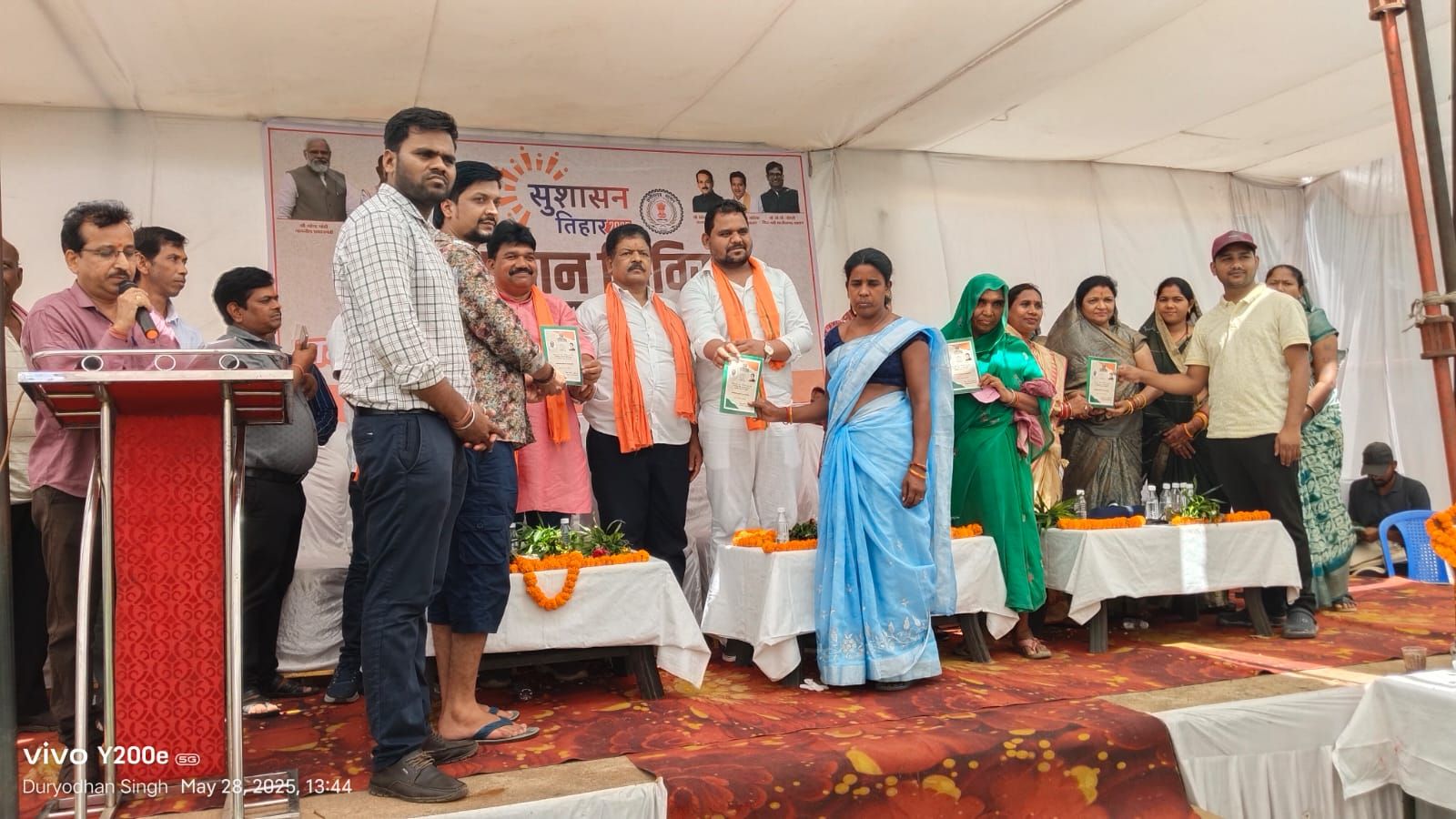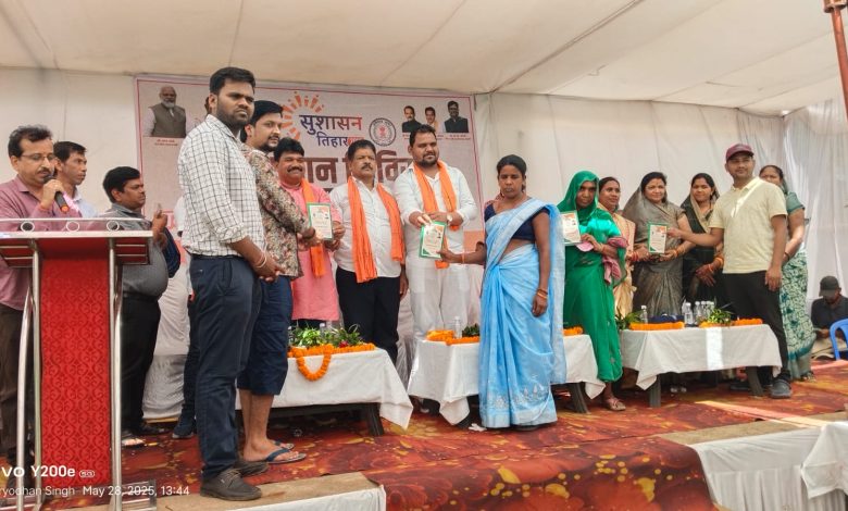 खरसिया के चपले में आयोजित शिविर में विभागीय योजनाओं की जानकारी के साथ ही मांग एवं समस्याओं से संंबंधित आवेदन लिए गए। इस दौरान सुशासन तिहार में लिए गए आवेदनों के निराकरण के संबंध में आवेदकों को जानकारी भी दी गई। मौके पर पात्र हितग्राहियों को विभागीय योजनाओं से लाभान्वित किया गया। जिसमें योगिता पटेल, भोजराम एवं संतोषी को प्रधानमंत्री आवास योजना से लाभान्वित किया गया। पदुमराम, शिवनंदन, निर्मला प्रधान एवं बंशीलाल को वय वंदना, मेमबाई डनसेना, कंचन बाई पटेल, दिलीप कुमार, कुमारी बाई एवं संतोषी बाई को आयुष्मान कार्ड तथा चितकुमारी, कोमल, गनेशी को सिकल सेल कार्ड से लाभान्वित किया गया। इसी प्रकार स्कूली बच्चों को जाति प्रमाण-पत्र भी वितरित किए गए। महिला एवं बाल विकास विभाग द्वारा गर्भवती महिलाओं की गोद भराई एवं नन्ने बच्चों का अन्नप्रासन्न करवाया गया। इसी प्रकार तमनार के सराईपाली में आयोजित शिविर में राशन कार्ड प्रदान किया गया। इस दौरान पूर्व विधायक श्रीमती सुनीति सत्यानंद राठिया, जनपद अध्यक्ष श्री जागेश्वर सिदार, डीडीसी श्री रमेश बेहरा, बंशीलाल चौधरी, जनपद उपाध्यक्ष श्रीमती गायत्री बेहरा सहित स्थानीय जनप्रतिनिधि एवं अधिकारी-कर्मचारी उपस्थित थे।